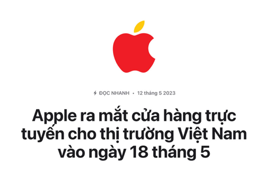 Ngày 12/5, Apple đã chính thức công bố sẽ ra mắt cửa hàng Apple Store đầu tiên ở thị trường Việt Nam vào ngày 18/5 tới. Đây là cửa hàng Apple Store trực tuyến và có thể là bước đệm thể "nhà táo" tiếp tục mở cửa hàng trực tiếp tại Việt Nam trong thời gian tới.