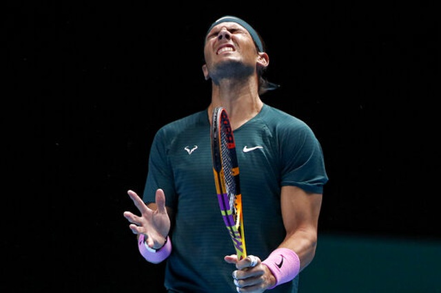 Nadal nhăn nhó sau khi thực hiện cú đánh không như ý