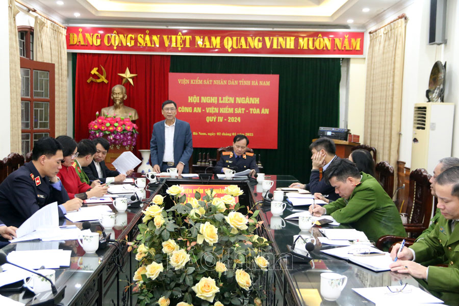 Chiều 2/1/2025, ba ngành làm án: Công an – Viện Kiểm sát nhân dân (KSND) – Tòa án nhân dân (TAND)) tổ chức hội nghị giao ban đánh giá kết quả công tác phối hợp giải quyết án hình sự quý IV/2024, triển khai nhiệm vụ trọng tâm quý I/2025.