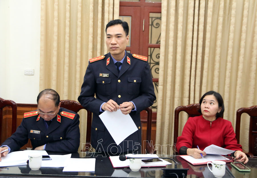 Đại diện phòng chuyên môn Viện KSND tỉnh phát biểu ý kiến tại hội nghị.