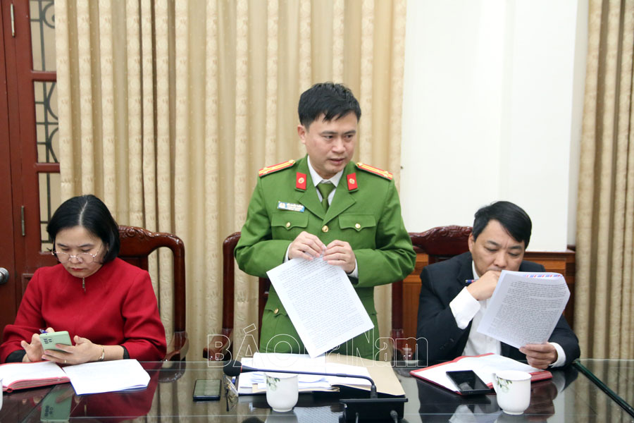 Đại diện phòng chuyên môn Công an tỉnh phát biểu ý kiến tại hội nghị.