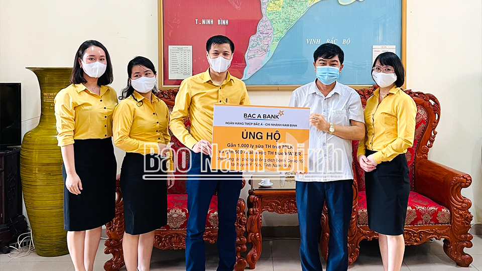 Tại huyện Vụ Bản, BAC A BANK Nam Định đã trao tặng gần 1.500 hộp sữa tươi và gần 800 chai nước lọc cho các cháu học sinh đang cách ly phòng, chống dịch COVID-19 của xã Hợp Hưng và trẻ em đang thực hiện cách ly tại khu cách ly tập trung của huyện. Tại huyện Ý Yên, BAC A BANK Nam Định phối hợp với Tập đoàn TH True Milk và Quỹ Vì tầm vóc Việt trao tặng gần 1.000 ly sữa và 500 chai nước TH True water để phục vụ công tác phòng, chống dịch trên địa bàn. Tại thành phố Nam Định, BAC A BANK Nam Định đã phối hợp với các đơn vị liên quan trao tặng UBND thành phố 300 bộ chăn - màn trang bị cho các lực lượng tuyến đầu làm nhiệm vụ phòng, chống dịch.