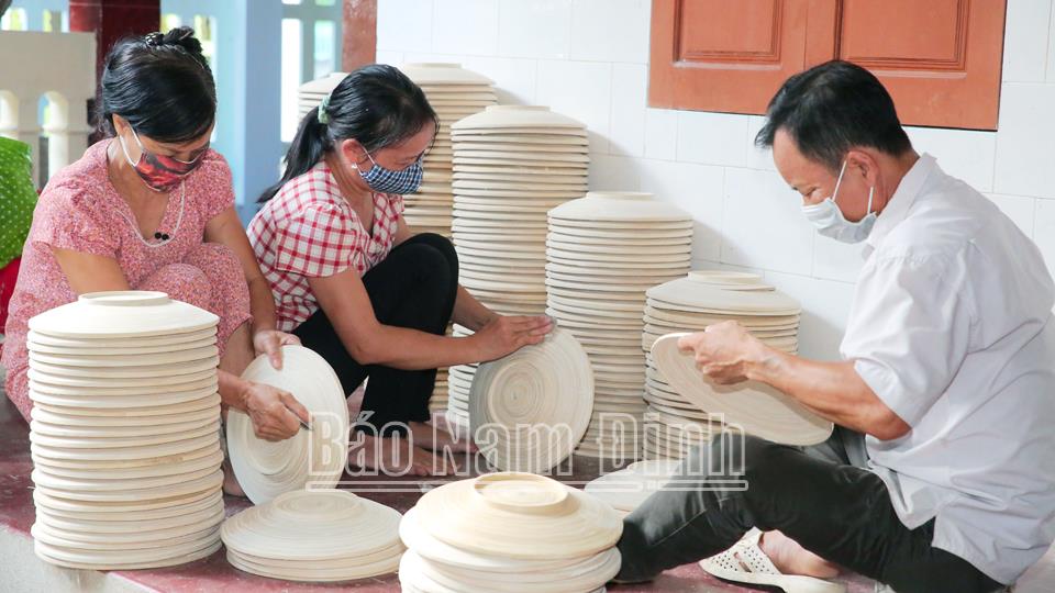 | Cơ sở sản xuất mây tre đan xuất khẩu của gia đình đảng viên Vũ Hồng Hải, xã Liên Minh, huyện Vụ Bản. |