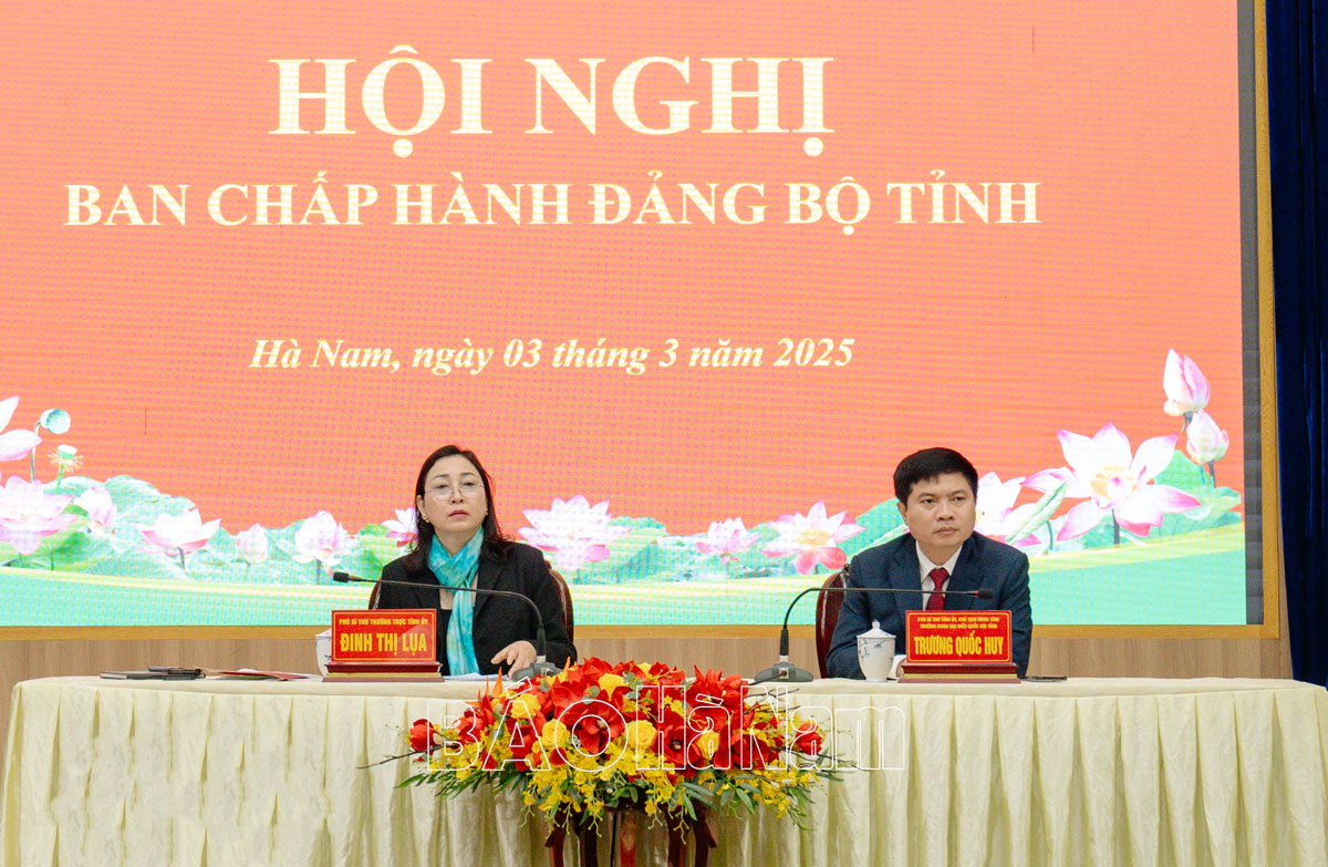 Phát biểu kết luận hội nghị đối với nội dung về công tác cán bộ, đồng chí Phó Bí thư Thường trực Tỉnh ủy Đinh Thị Lụa nhấn mạnh: trên cơ sở kết quả bầu cử, BCH Đảng bộ tỉnh giao Ban Thường vụ Tỉnh ủy lãnh đạo, chỉ đạo Ban Tổ chức Tỉnh ủy tham mưu hoàn thiện các văn bản đề nghị Bộ Chính trị chuẩn y kết quả bầu cử chức danh Bí thư Tỉnh ủy Hà Nam khóa XX, nhiệm kỳ 2020-2025 và chỉ định tham gia Đảng ủy Quân khu 3 đối với đồng chí Trương Quốc Huy, Phó Bí thư Tỉnh ủy, Chủ tịch UBND tỉnh, Trưởng Đoàn đại biểu Quốc hội tỉnh Hà Nam.