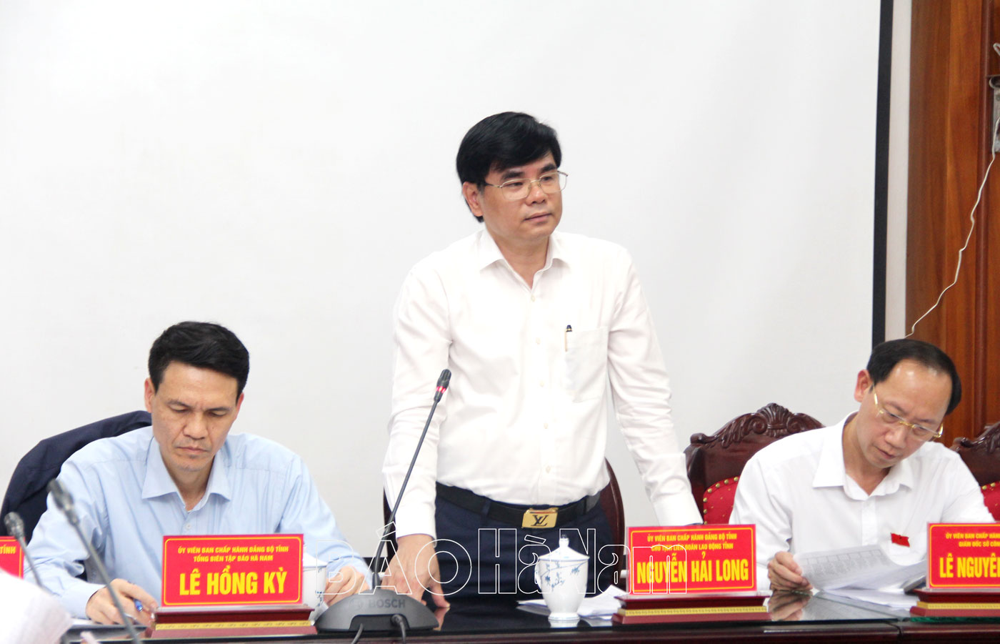 Lãnh đạo Liên Đoàn lao động tỉnh phát biểu ý kiến tại hội nghị