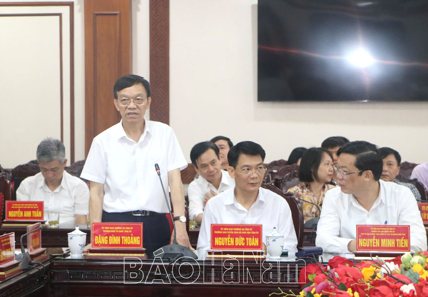 Đồng chí Đặng Đình Thoảng, Ủy viên BTV Tỉnh ủy, Trưởng Ban Tổ chức Tỉnh ủy phát biểu ý kiến tại hội nghị.