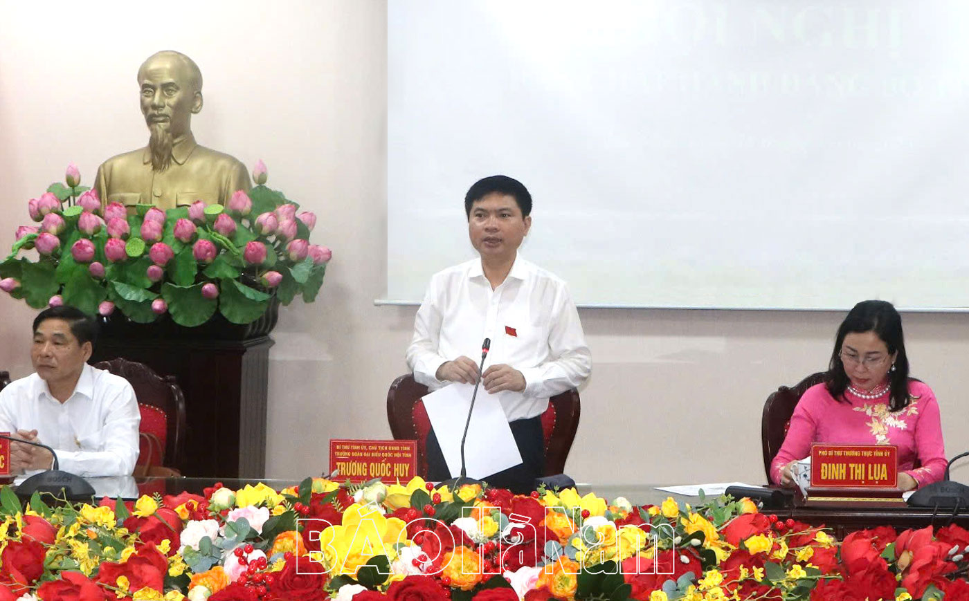 Các đồng chí: Trương Quốc Huy, Bí thư Tỉnh ủy, Chủ tịch UBND tỉnh, Trưởng Đoàn đại biểu Quốc hội tỉnh; Đinh Thị Lụa, Phó Bí thư Thường trực Tỉnh ủy chủ trì hội nghị. Dự hội nghị có các đồng chí Ủy viên Ban Thường vụ Tỉnh ủy, Ủy viên BCH Đảng bộ tỉnh; lãnh đạo Ban Tổ chức Tỉnh ủy, Văn phòng Tỉnh ủy, các Ban của HĐND tỉnh, Văn phòng UBND tỉnh, Sở Tài chính; các Ủy viên Ủy ban Kiểm tra Tỉnh ủy; Thường trực các huyện ủy, thị ủy, thành ủy.