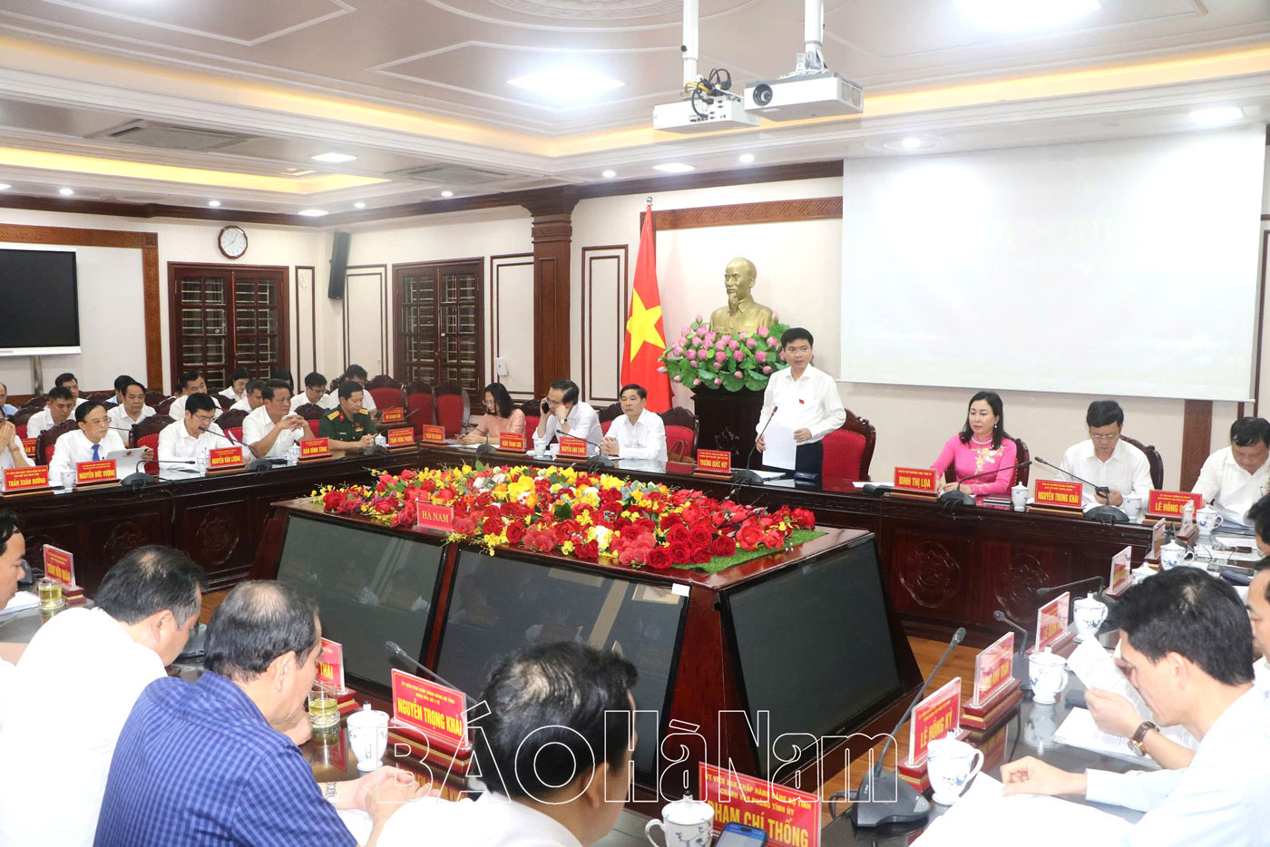 Hội nghị đã thảo luận, cho ý kiến về các nội dung dự kiến trình Kỳ họp thứ 26 (Kỳ họp chuyên đề) HĐND tỉnh khóa XIX, nhiệm kỳ 2021-2026 theo thẩm quyền gồm: Việc sáp nhập tỉnh Hà Nam, Ninh Bình và Nam Định (lấy tên tỉnh Ninh Bình, Trung tâm chính trị - hành chính đặt tại tỉnh Ninh Bình hiện nay) và việc sắp xếp đơn vị hành chính cấp xã của tỉnh Hà Nam năm 2025 (theo phương án dự kiến, toàn tỉnh sẽ sắp xếp 98 đơn vị hành chính cấp xã gồm 65 xã, 29 phường, 4 thị trấn thành 33 đơn vị hành chính, trong đó có 16 phường, 17 xã, giảm 66,3% số xã…