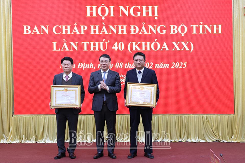 Tại hội nghị đã trao Bằng khen của BCH Đảng bộ tỉnh cho Đảng bộ huyện Giao Thủy và Đảng bộ Công an tỉnh đạt tiêu chuẩn "Hoàn thành xuất sắc nhiệm vụ" tiêu biểu năm 2024.