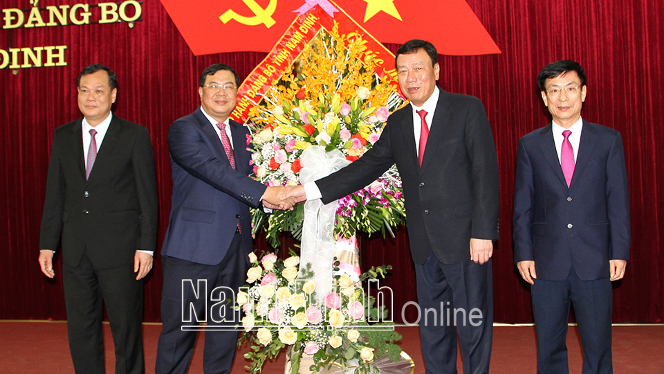 Đồng chí Bí thư Tỉnh ủy Phạm Gia Túc phát biểu chúc mừng đồng chí Tổng Thanh tra Chính phủ Đoàn Hồng Phong trên cương vị công tác mới; nhấn mạnh, những kết quả, thành tích trong quá trình công tác của đồng chí Đoàn Hồng Phong đã góp phần quan trọng vào sự phát triển toàn diện của tỉnh trong những năm qua. Đồng chí Bí thư Tỉnh ủy khẳng định sẽ tiếp tục cùng với Thường trực Tỉnh ủy, Ban TVTU, BCH Đảng bộ tỉnh đoàn kết, phát huy những kết quả đạt được của tỉnh trong những năm vừa qua để thực hiện thắng lợi Nghị quyết Đại hội Đảng bộ tỉnh lần thứ XX. Đồng chí Bí thư Tỉnh ủy mong rằng trên cương vị công tác mới, đồng chí Tổng Thanh tra Chính phủ Đoàn Hồng Phong tiếp tục phát huy kinh nghiệm công tác, hoàn thành xuất sắc nhiệm vụ được giao và tiếp tục quan tâm, có những đóng góp vào sự phát triển của tỉnh Nam Định./.