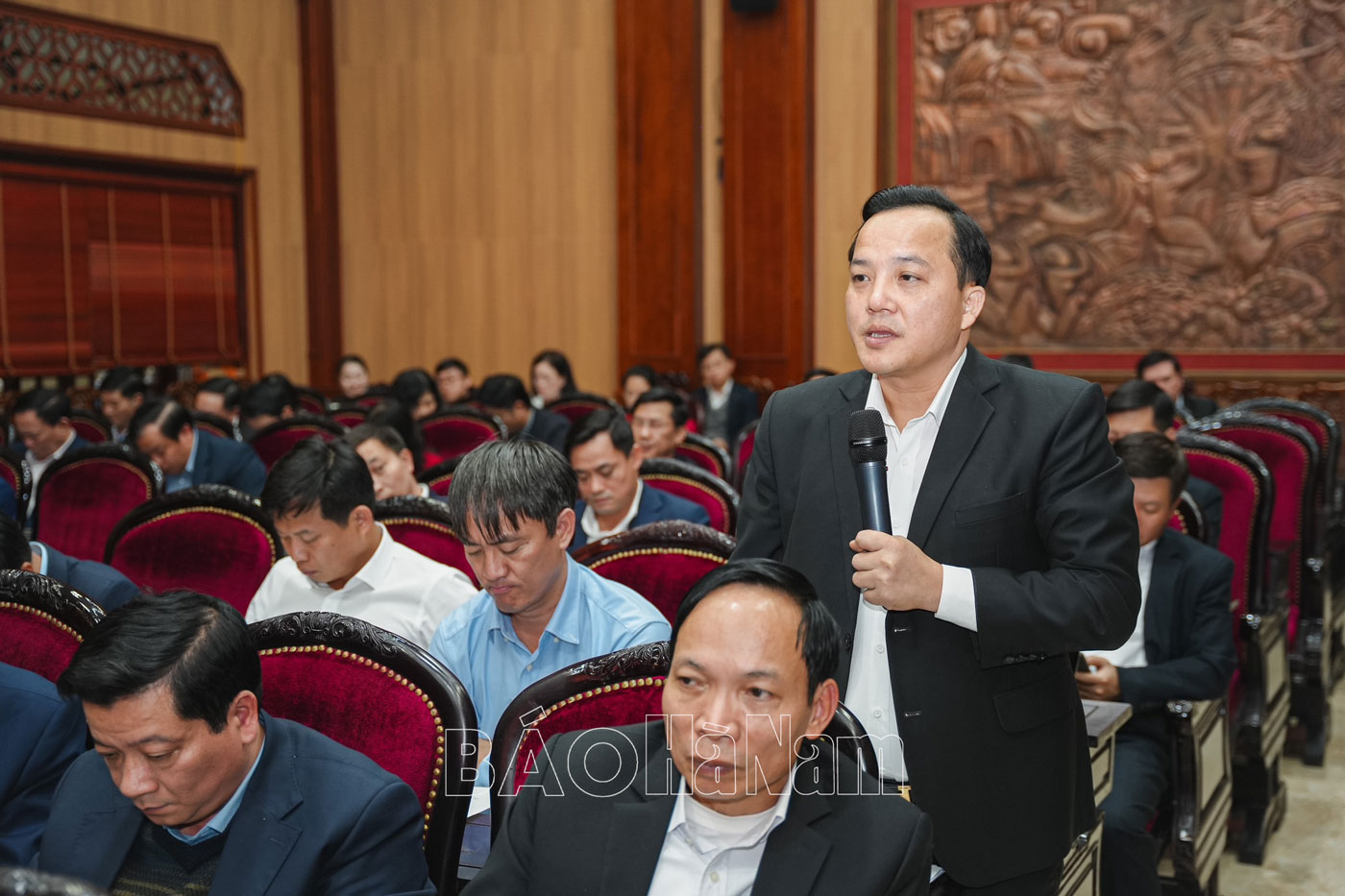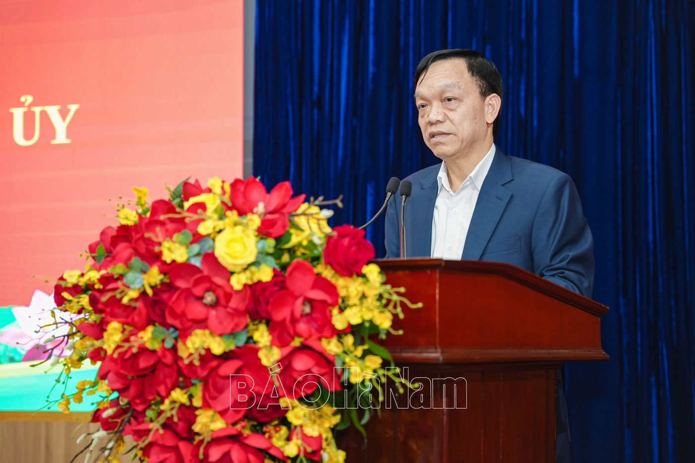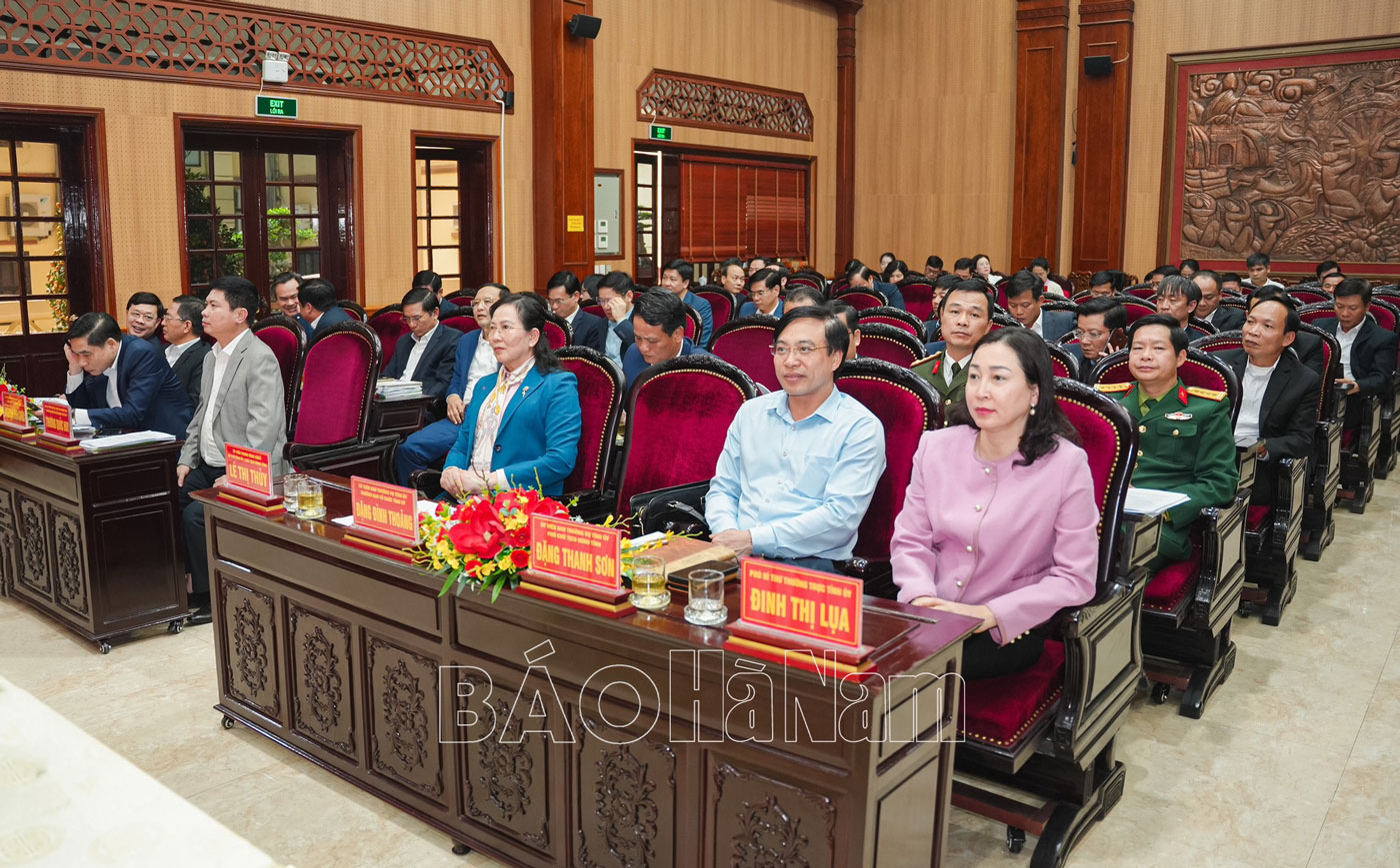 Phát biểu kết luận hội nghị, đồng chí Bí thư Tỉnh ủy Lê Thị Thủy nhấn mạnh: Sau khi nghe quán triệt nội dung cuốn sách của cố Tổng Bí thư Nguyễn Phú Trọng về "Xây dựng và phát triển nền văn hóa Việt Nam tiên tiến, đậm đà bản sắc dân tộc" và 2 văn bản của BCH Trung ương, Bộ Chính trị, đề nghị các ban xây dựng Đảng của Tỉnh ủy, các ban cán sự đảng, đảng đoàn, BTV huyện, thị, thành ủy, đảng ủy trực thuộc lãnh đạo, chỉ đạo tổ chức nghiên cứu, quán triệt, tuyên truyền sâu rộng về nội dung cuốn sách bằng hình thức phù hợp, bảo đảm thiết thực, hiệu quả. Nâng cao nhận thức của cấp ủy, chính quyền, đoàn thể, nhân dân về vai trò, ý nghĩa, sự cần thiết của việc xây dựng, phát triển nền văn hóa Việt Nam tiên tiến, đậm đà bản sắc dân tộc; thực hiện giải pháp cụ thể nhằm giữ gìn, phát huy, xây dựng và phát triển hệ giá trị quốc gia, hệ giá trị văn hóa, hệ giá trị gia đình, chuẩn mực con người, góp phần xây dựng, phát triển con người Hà Nam trong xây dựng, phát triển quê hương, đất nước gắn với triển khai thực hiện nghiêm túc, hiệu quả Kết luận 84 của Bộ Chính trị về tiếp tục thực hiện Nghị quyết 23 của Bộ Chính trị khóa X về tiếp tục xây dựng và phát triển văn học, nghệ thuật trong thời kỳ mới; lãnh đạo, chỉ đạo quán triệt, triển khai sâu rộng Quy chế bầu cử trong Đảng của BCH Trung ương tới các cấp ủy, TCĐ và toàn thể đảng viên; tập trung đối với những nội dung mới sửa đổi, bổ sung, bảo đảm công tác bầu cử trong Đảng nghiêm túc, đúng quy định.