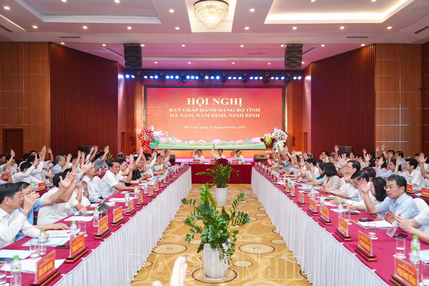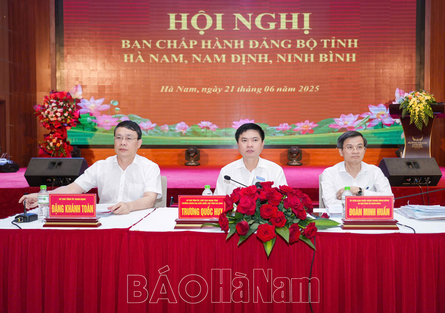 Chiều 21/6, Ban Chấp hành (BCH) Đảng bộ tỉnh Hà Nam, Nam Định, Ninh Bình tổ chức phiên họp lần thứ nhất, thảo luận thông qua các nội dung liên quan về tổ chức bộ máy thực hiện hợp nhất, sáp nhập tỉnh; tham gia ý kiến vào dự thảo Báo cáo chính trị trình Đại hội Đảng bộ tỉnh Ninh Bình (sau hợp nhất, sáp nhập) nhiệm kỳ 2025 - 2030.