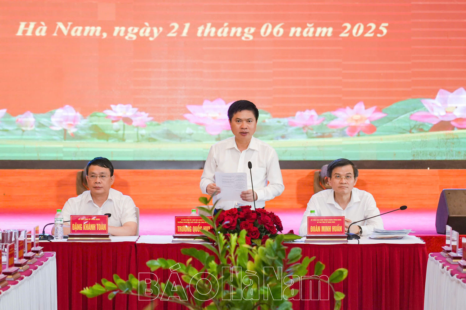 Kết luận nội dung này, đồng chí Bí thư Tỉnh ủy Hà Nam Trương Quốc Huy yêu cầu các cơ quan, đơn vị tiếp tục tham gia nghiên cứu xây dựng dự thảo, đóng góp ý kiến bằng văn bản, sau đó tổ chức họp và tiếp tục thảo luận để hoàn thiện Dự thảo Báo cáo chính trị, bảo đảm chất lượng, sát thực tiễn và thể hiện được ý chí, nguyện vọng của cán bộ, đảng viên và nhân dân trong toàn tỉnh, chuẩn bị tốt cho việc tổ chức Đại hội Đảng bộ tỉnh Ninh Bình nhiệm kỳ 2025 – 2030.