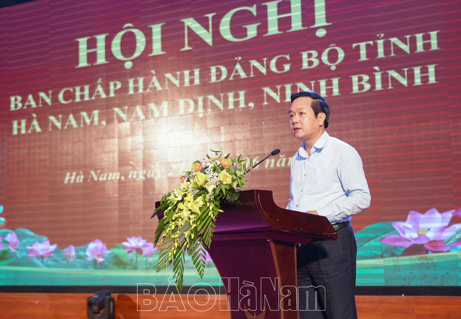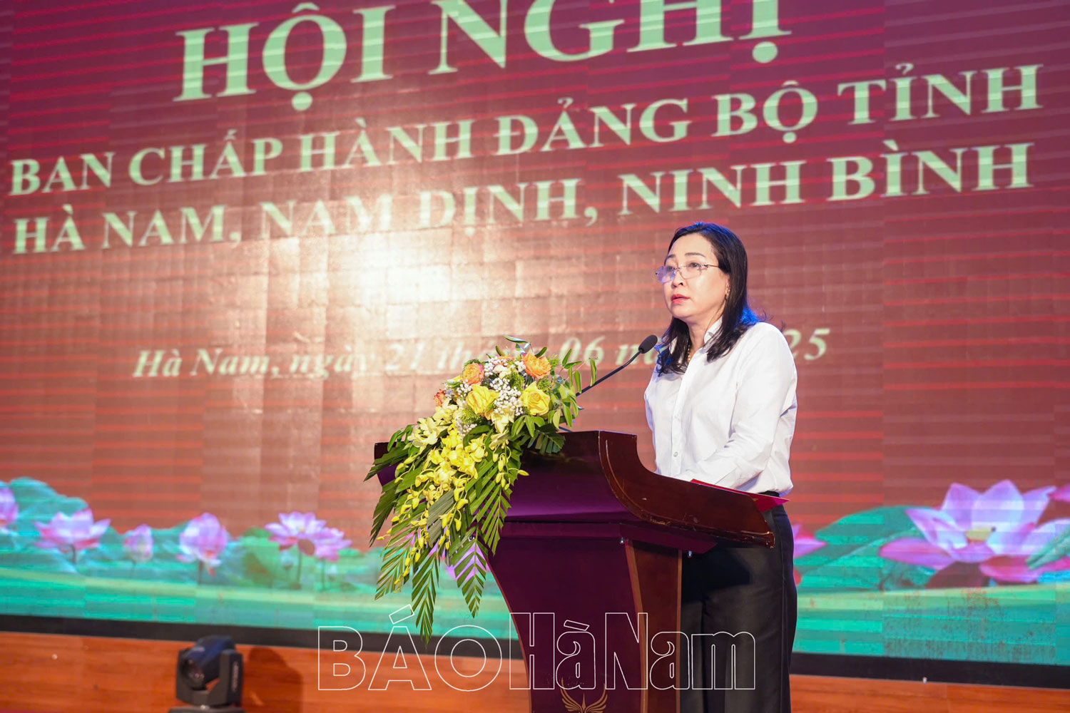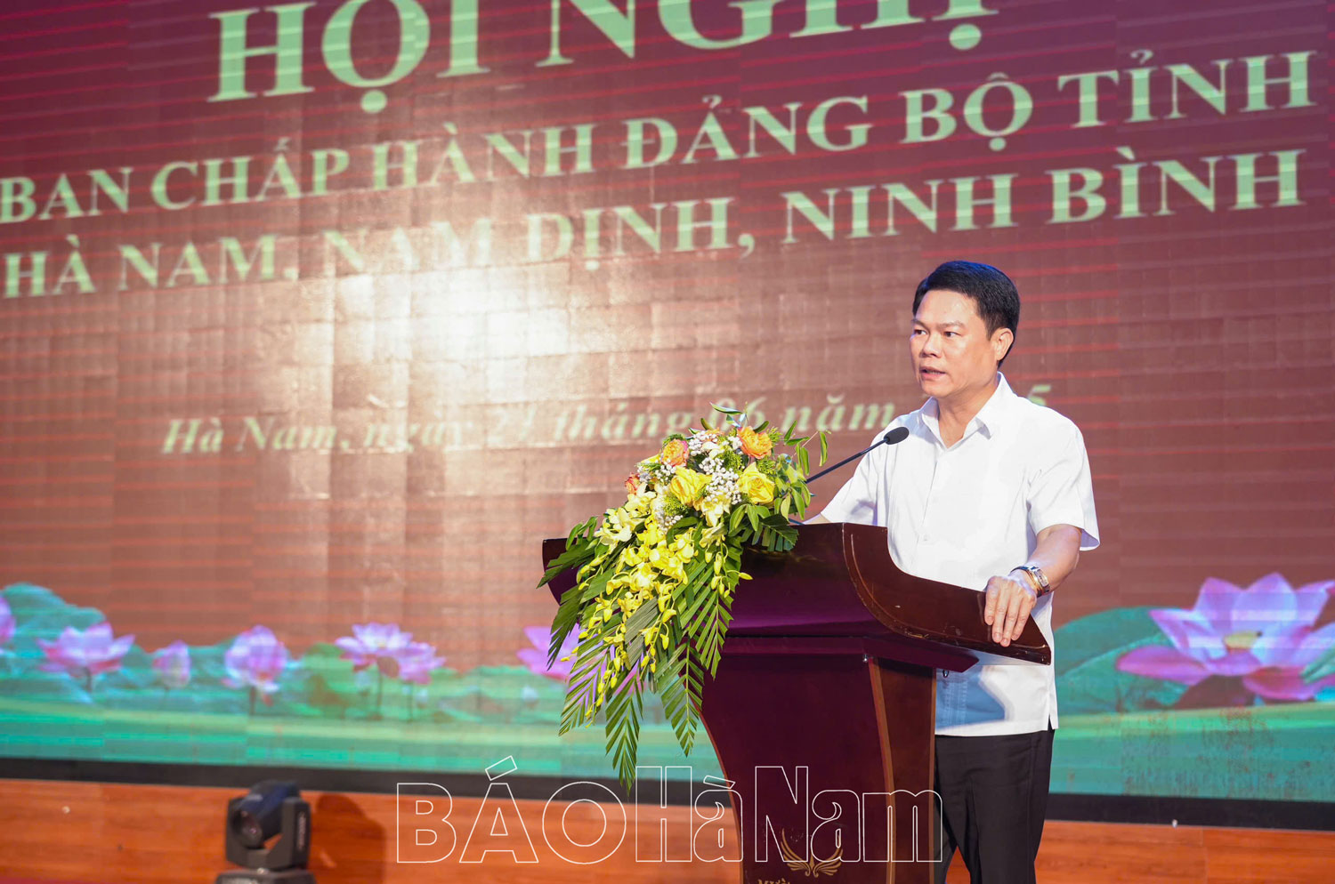 Hội nghị đã nghe đồng chí Mai Văn Tuất, Phó Bí thư Thường trực Tỉnh ủy, Chủ tịch HĐND tỉnh Ninh Bình trình bày: Đề án thành lập Đảng bộ tỉnh Ninh Bình; Đề án sắp xếp, tinh gọn tổ chức MTTQ, các tổ chức chính trị - xã hội, các hội quần chúng do Đảng, Nhà nước giao nhiệm vụ ở tỉnh Ninh Bình (sau sáp nhập). Đồng chí Đinh Thị Lụa, Phó Bí thư Thường trực Tỉnh ủy Hà Nam trình bày các đề án: Sắp xếp cơ quan tham mưu, giúp việc trực thuộc Tỉnh ủy, cơ quan Báo và Đài Phát thanh - Truyền hình tỉnh, Trường Chính trị tỉnh Ninh Bình (sau sáp nhập) và Đề án thành lập Đảng bộ các cơ quan Đảng tỉnh Ninh Bình (sau sáp nhập). Đồng chí Lê Quốc Chỉnh, Phó Bí thư Thường trực Tỉnh ủy, Chủ tịch HĐND tỉnh, Trưởng Đoàn ĐBQH tỉnh Nam Định trình bày Đề án sắp xếp các cơ quan thuộc HĐND tỉnh và ĐBQH tỉnh Ninh Bình (sau sáp nhập). Đồng chí Phạm Quang Ngọc, Phó Bí thư Tỉnh ủy, Chủ tịch UBND tỉnh Ninh Bình trình bày các đề án: Thành lập Đảng bộ UBND tỉnh Ninh Bình (sau sáp nhập); sắp xếp các sở, ban, ngành khối chính quyền của tỉnh Ninh Bình (sau sáp nhập). Đồng chí Nguyễn Hoàng Hà, Ủy viên BTV Tỉnh ủy, Chủ tịch Ủy ban MTTQ tỉnh Ninh Bình trình bày Đề án sắp xếp tinh gọn cơ quan MTTQ, các tổ chức chính trị - xã hội và các hội quần chúng Đảng, Nhà nước giao nhiệm vụ của tỉnh Ninh Bình (sau sáp nhập). Đại tá Trịnh Hồng Phong, Ủy viên BTV Tỉnh ủy, Chỉ huy trưởng Bộ CHQS tỉnh Hà Nam trình bày Đề án thành lập Đảng bộ Quân sự tỉnh Ninh Bình (sau sáp nhập). Đại tá Nguyễn Hữu Mạnh, Ủy viên BTV Tỉnh ủy, Giám đốc Công an tỉnh Nam Định báo cáo Đề án thành lập Đảng bộ Công an tỉnh Ninh Bình (sau sáp nhập).