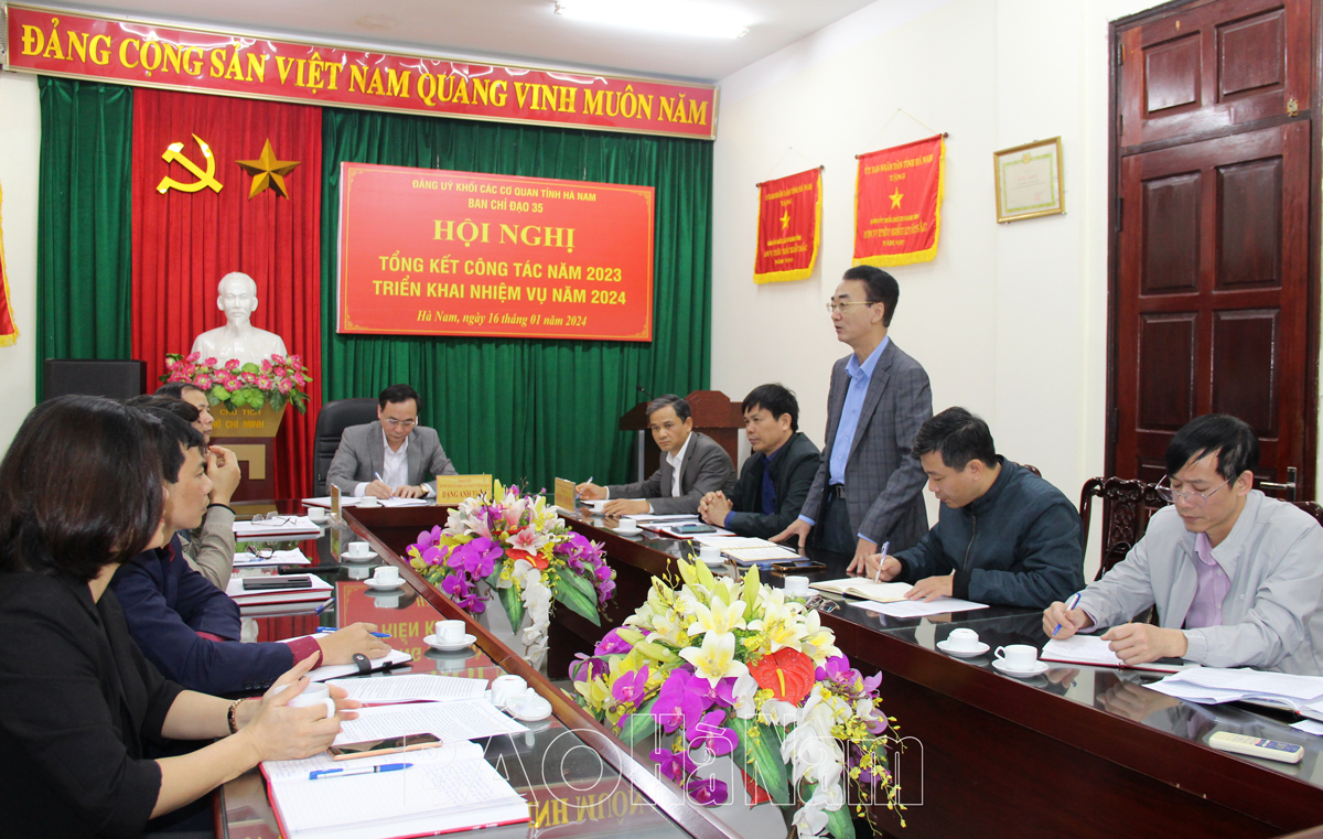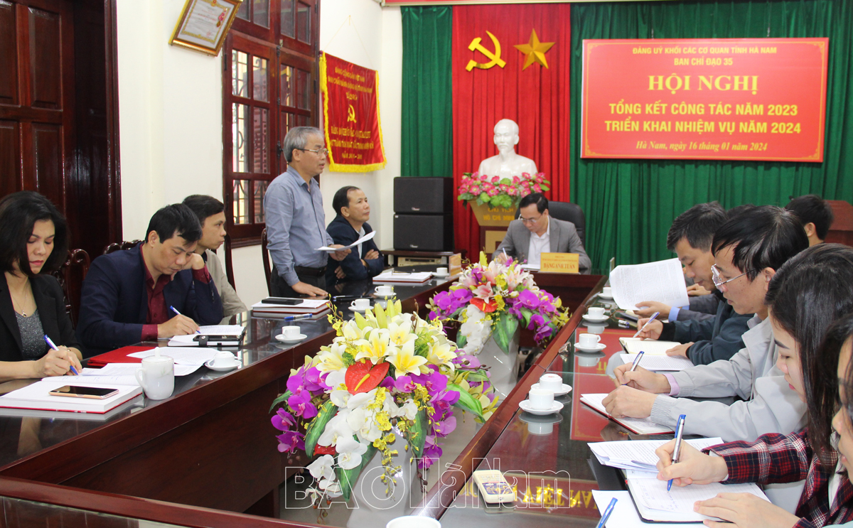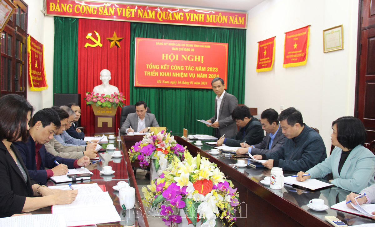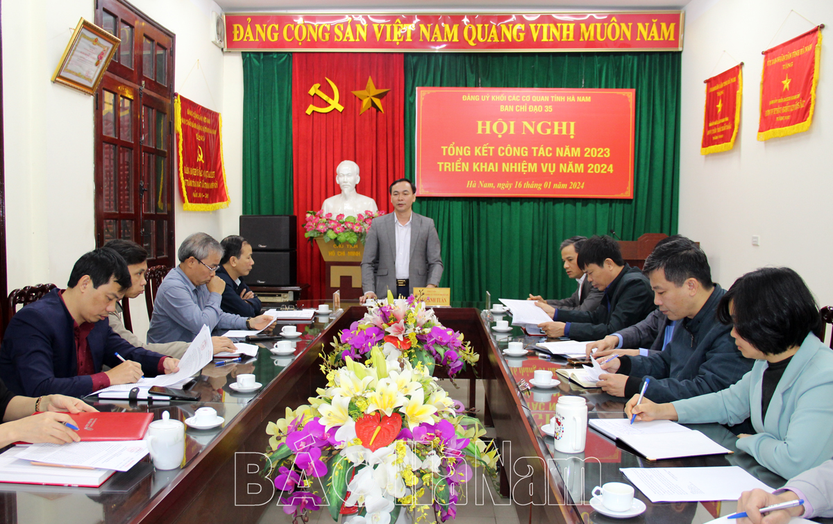 Sáng 16/1, Ban Chỉ đạo (BCĐ) 35 Đảng ủy Khối các cơ quan (CCQ) tỉnh tổ chức hội nghị tổng kết công tác năm 2023, triển khai nhiệm vụ năm 2024. Đồng chí Đặng Anh Tuấn, Tỉnh ủy viên, Bí thư Đảng ủy, Trưởng BCĐ 35 Đảng ủy Khối CCQ tỉnh chủ trì hội nghị. Dự hội nghị có các đồng chí thành viên BCĐ; tổ thư ký giúp việc BCĐ 35 Đảng ủy Khối CCQ tỉnh.