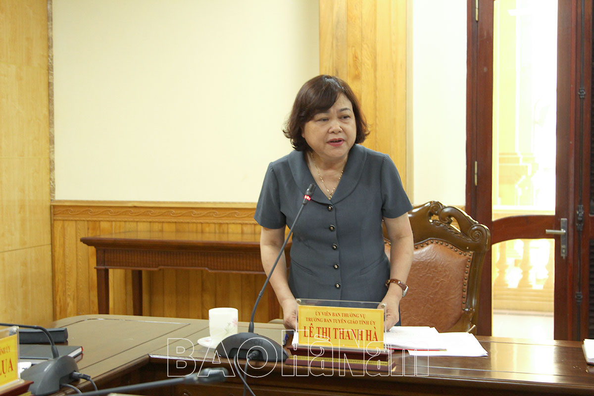 Phát biểu kết luận hội nghị, đồng chí Đinh Thị Lụa, Phó Bí thư Thường trực Tỉnh ủy, Trưởng BCĐ 35 tỉnh đề nghị các thành viên BCĐ 35 tỉnh tập trung hoàn thành tốt nhiệm vụ trong những tháng cuối năm. Tập trung nắm chắc tình hình dư luận xã hội, tình hình CBĐV, hoạt động chống phá của các thế lực thù địch; kịp thời báo cáo BCĐ tỉnh để lãnh đạo, chỉ đạo, định hướng công tác tuyên truyền, đấu tranh phù hợp, hiệu quả.