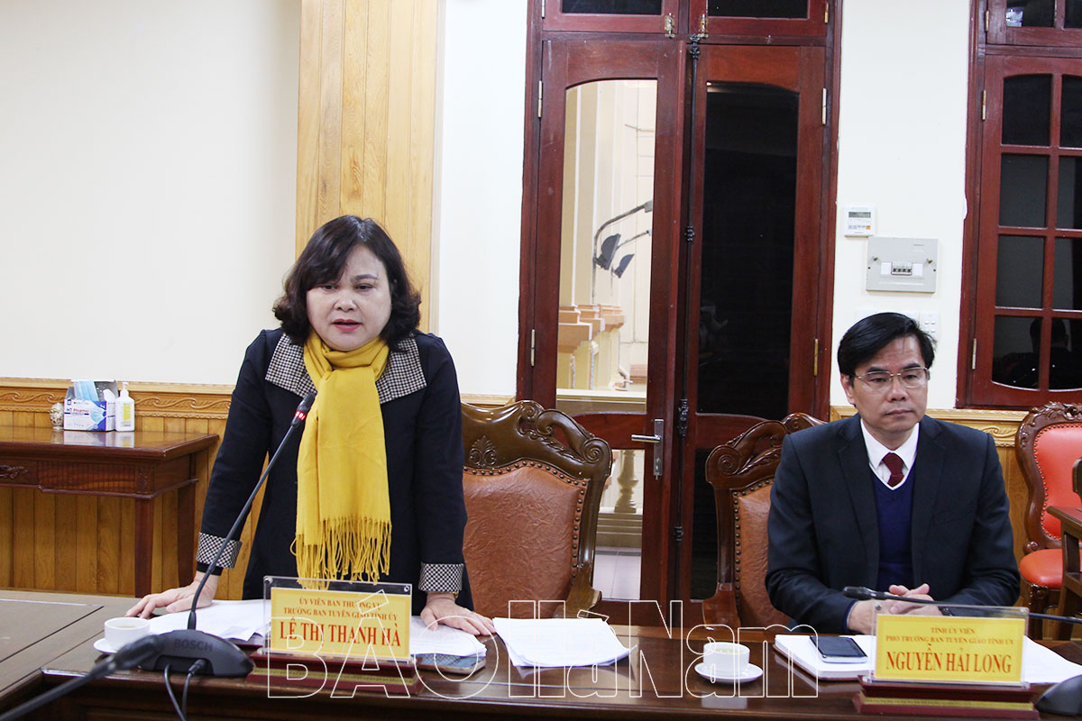 Phát biểu kết luận hội nghị, đồng chí Đinh Thị Lụa, Phó Bí thư Thường trực Tỉnh ủy, Trưởng BCĐ 35 tỉnh yêu cầu các đơn vị thành viên BCĐ 35 tỉnh chủ động khắc phục tồn tại, hạn chế đã được chỉ ra. Tăng cường sự lãnh đạo của các cấp ủy, BCĐ 35 các cấp trong việc bảo vệ nền tảng tư tưởng của Đảng, đấu tranh phản bác các quan điểm sai trái, thù địch; tham mưu sơ kết 5 năm thực hiện Nghị quyết số 35 của Bộ Chính trị (Khoá XII). Tập trung nắm chắc tình hình dư luận xã hội, tình hình CBĐV, các hoạt động chống phá của các thế lực thù địch, kịp thời báo cáo BCĐ tỉnh để lãnh đạo, chỉ đạo, định hướng tuyên truyền, đấu tranh, phản bác.