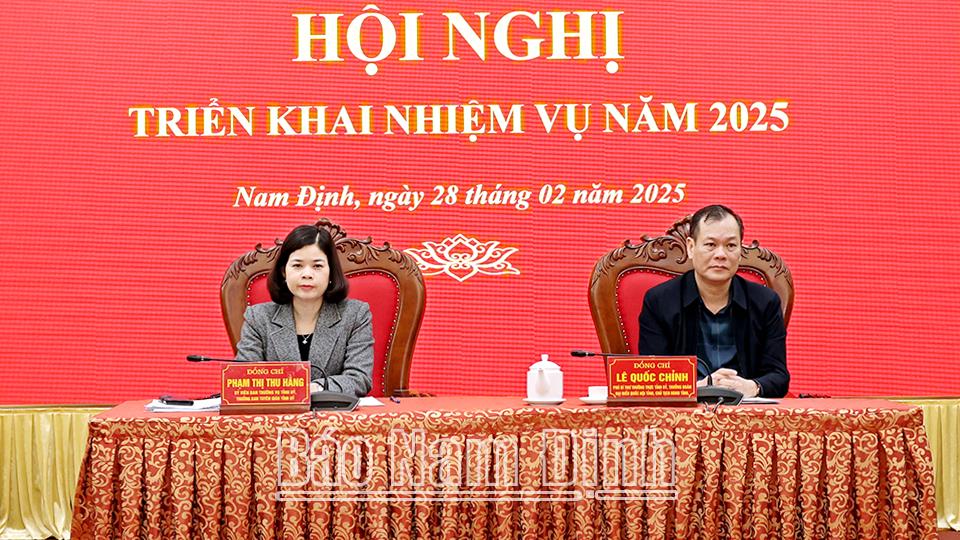 | Các đồng chí: Lê Quốc Chỉnh, Phó Bí thư Thường trực Tỉnh ủy, Trưởng đoàn Đoàn đại biểu Quốc hội tỉnh, Chủ tịch HĐND tỉnh, Trưởng Ban Chỉ đạo 35 Tỉnh ủy; Phạm Thị Thu Hằng, Ủy viên Ban TVTU, Trưởng Ban Tuyên giáo Tỉnh ủy, Phó Trưởng ban Thường trực Ban Chỉ đạo 35 Tỉnh ủy chủ trì hội nghị. |