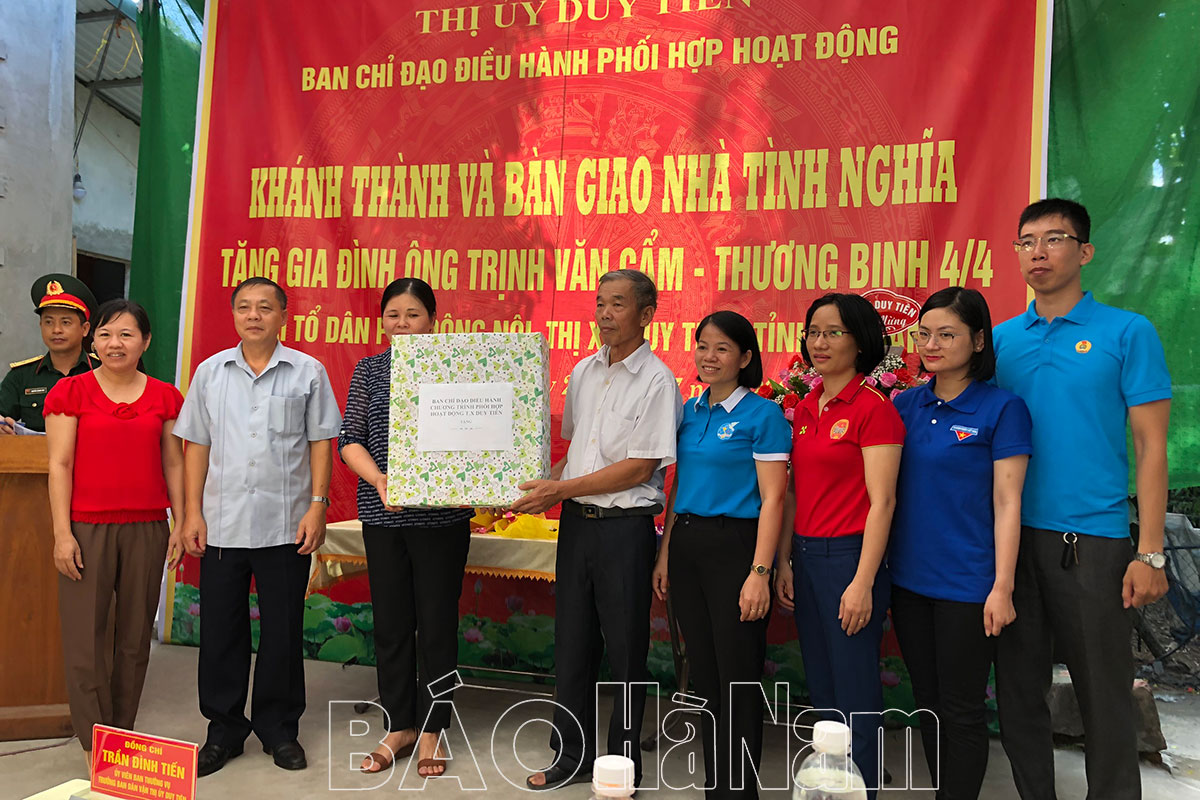 Ban chỉ đạo chương trình phối hợp hoạt động thị xã Duy Tiên khánh thành bàn giao nhà tình nghĩa