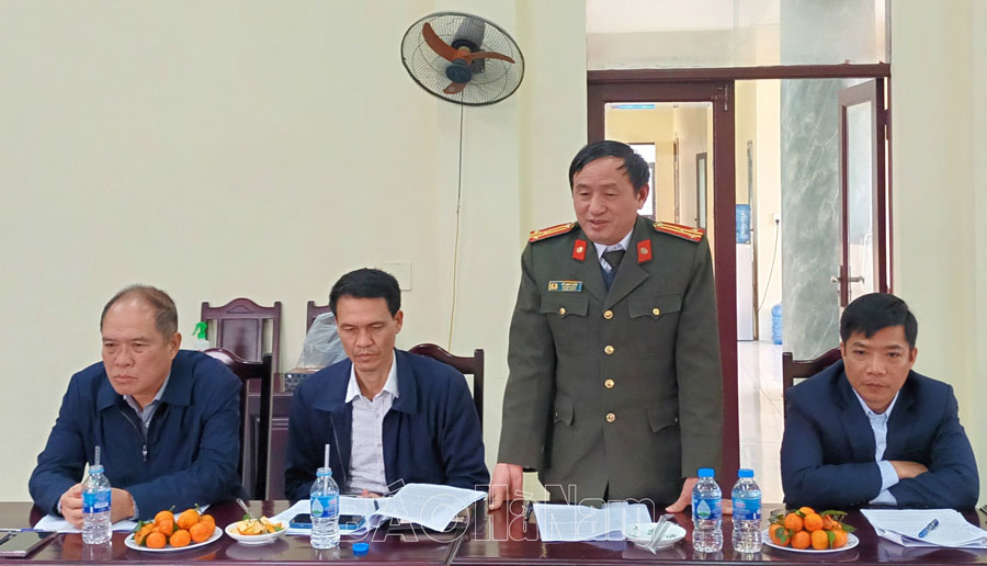 Đại diện Công an tỉnh phát biểu ý kiến tại hội nghị.