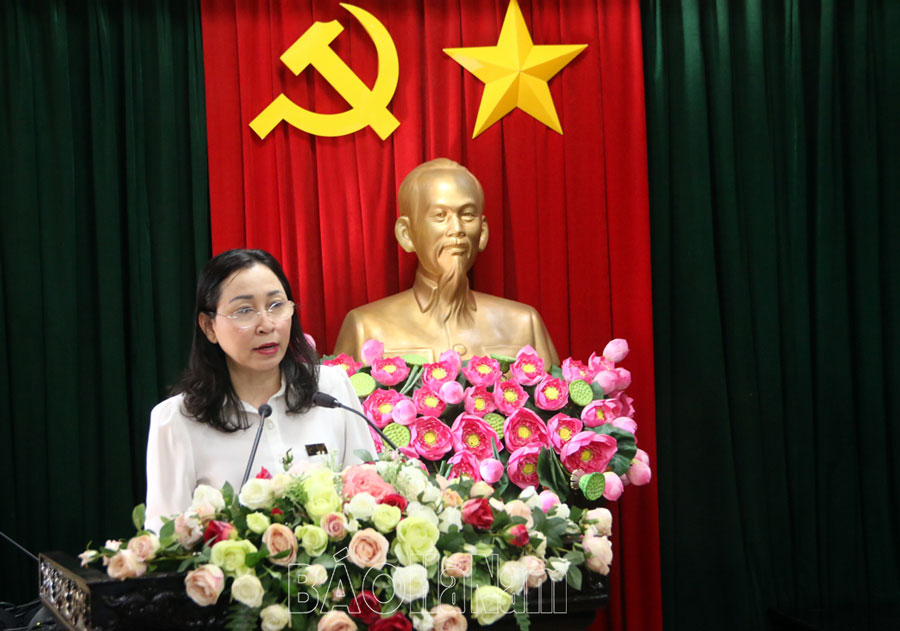 Đồng chí Đinh Thị Lụa, Phó Bí thư Thường trực Tỉnh ủy, Trưởng Ban Chỉ đạo công tác tôn giáo tỉnh phát biểu chỉ đạo tại hội nghị.