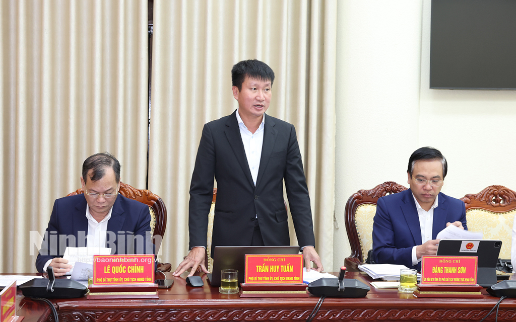 Đồng chí Trần Huy Tuấn, Phó Bí thư Tỉnh ủy, Chủ tịch UBND tỉnh, Phó Trưởng Ban chỉ đạo phát biểu tại phiên họp.Đồng chí Đặng Thanh Sơn, Ủy viên Ban Thường vụ Tỉnh ủy, Phó Chủ tịch Thường trực HĐND tỉnh phát biểu tại phiên họp.