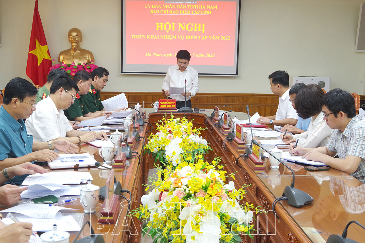 Ngày 16/5, Ban chỉ đạo (BCĐ) diễn tập tỉnh tổ chức hội nghị triển khai nhiệm vụ diễn tập năm 2022. Đồng chí Trương Quốc Huy, Phó Bí thư Tỉnh ủy, Chủ tịch UBND tỉnh, Trưởng đoàn Đại biểu Quốc hội tỉnh, Trưởng BCĐ diễn tập tỉnh chủ trì hội nghị.