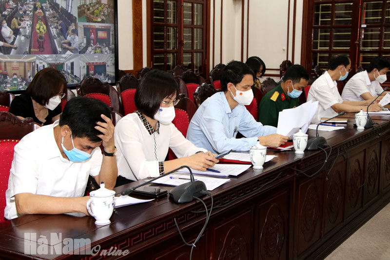 Báo cáo tình hình bệnh Covid-19, đại diện Sở Y tế cho biết, đến sáng ngày 4/4 trên thế giới có gần 200 triệu người mắc Covid -19, trên 4 triệu người đã tử vong. Tại Việt Nam, từ 27 tháng 4 đến nay đã ghi nhận 165.339 người mắc, 1.881 trường hợp tử vong, gần 47.000 người đã khỏi bệnh. Riêng Hà Nam có 68 trường hợp mắc, đã điều trị khỏi cho 54 người. Đáng chú ý, những tỉnh lân cận Hà Nam đang có diễn biến dịch phức tạp như Hà Nội (có 1.878 ca), Hưng Yên (295 ca)…