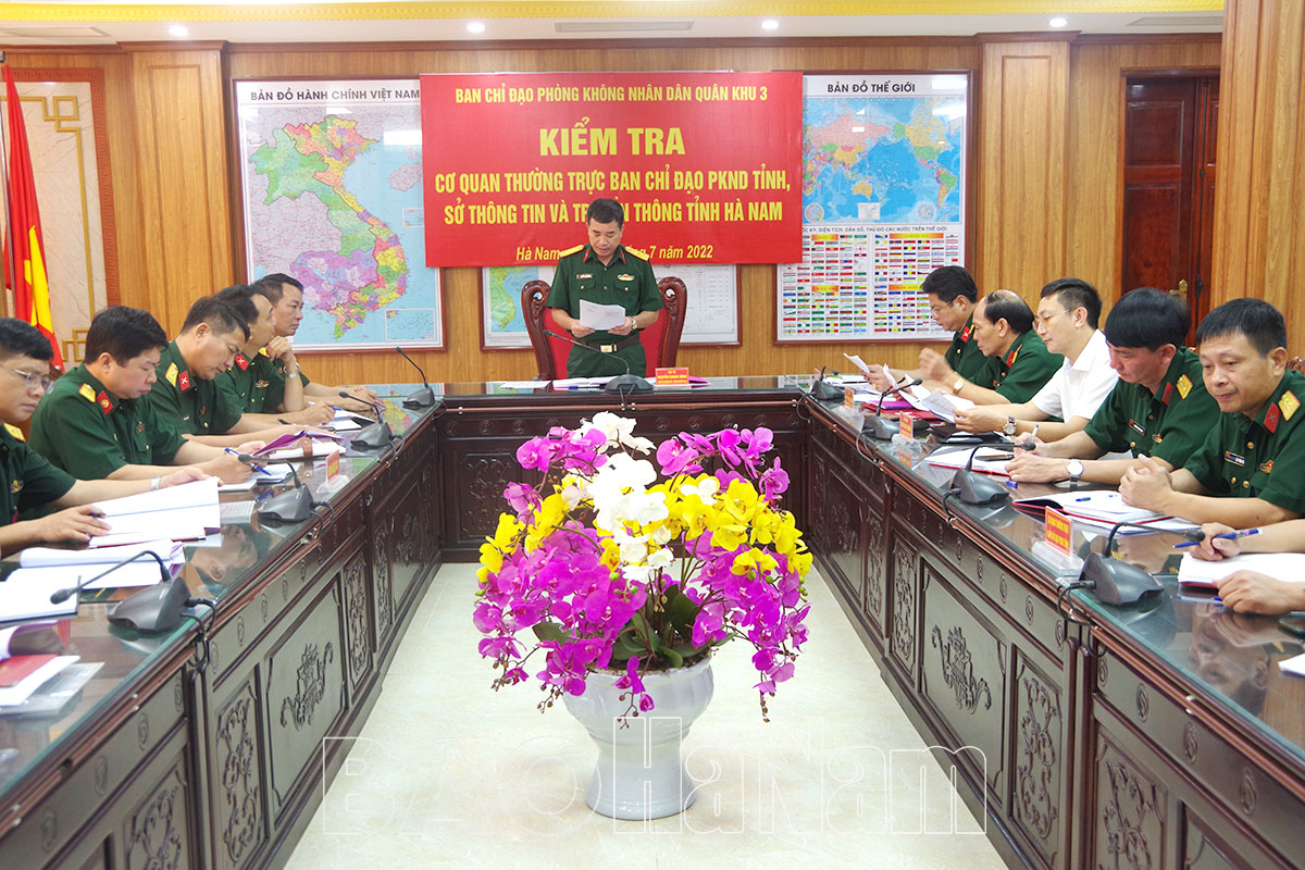 Đối với thành phố Phủ Lý, đoàn kiểm tra các nội dung: kết quả công tác quán triệt, triển khai thực hiện Nghị định của Chính phủ và các văn bản chỉ đạo, hướng dẫn của cấp trên về công tác PKND; kết quả ban hành các chủ trương của cấp ủy, chỉ thị, kế hoạch của UBND về công tác PKND; kết quả công tác tuyên truyền, giáo dục về công tác PKND; hệ thống văn kiện PKND cấp huyện và các phòng, ban, ngành; văn kiện tác chiến phòng không của cơ quan thường trực BCĐ PKND thành phố; kết quả bồi dưỡng, huấn luyện, luyện tập cho lực lượng chuyên trách PKND...