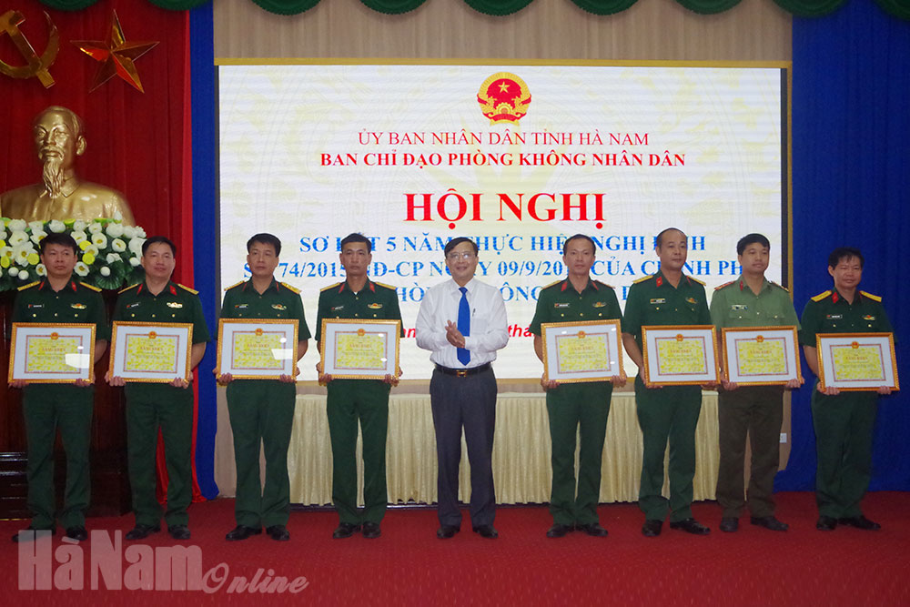 Đồng chí Nguyễn Đức Vượng, TUV, Phó Chủ tịch UBND tỉnh, Trưởng Ban chỉ đạo PKND tỉnh trao bằng khen cho các tập thể, cá nhân có thành tích xuất sắc trong thực hiện Nghị định 74 của Chính phủ.