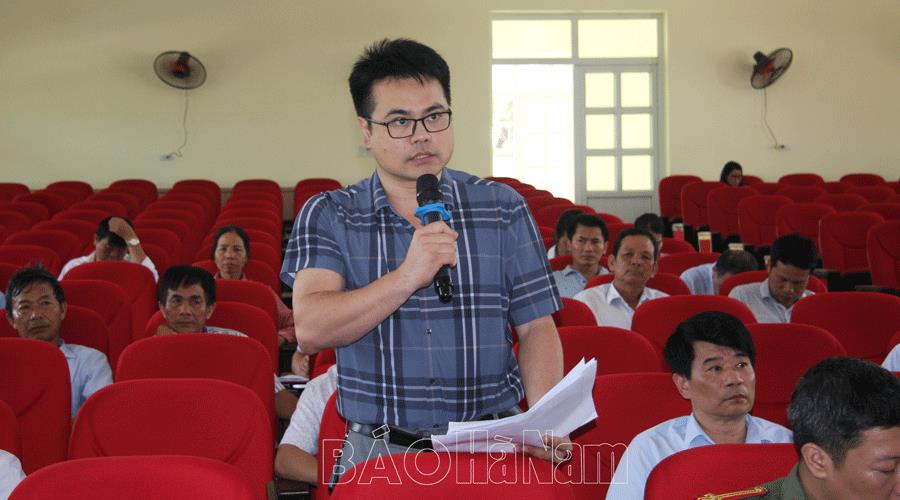 Thành viên BCĐ xây dựng NTM nâng cao huyện phát biếu ý kiến tại hội nghị.