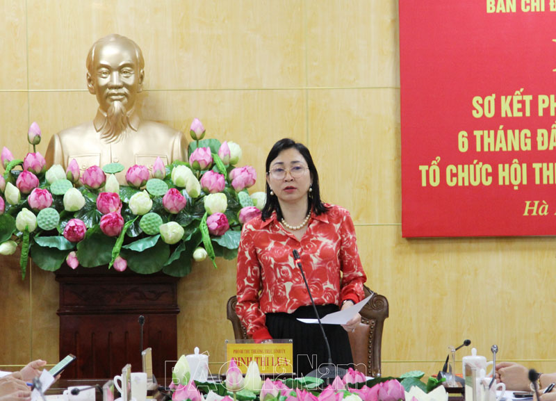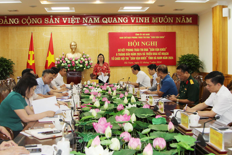 Chiều 31/7, Ban chỉ đạo (BCĐ) phong trào thi đua (PTTĐ) “Dân vận khéo” tỉnh tổ chức hội nghị sơ kết hoạt động 6 tháng đầu năm, triển khai nhiệm vụ 6 tháng cuối năm và Kế hoạch tổ chức hội thi “Dân vận khéo” tỉnh Hà Nam năm 2024. Đồng chí Đinh Thị Lụa, Phó Bí thư Thường trực Tỉnh ủy, Trưởng BCĐ PTTĐ “Dân vận khéo”, Trưởng Ban tổ chức (BTC) hội thi “Dân vận khéo” chủ trì hội nghị.