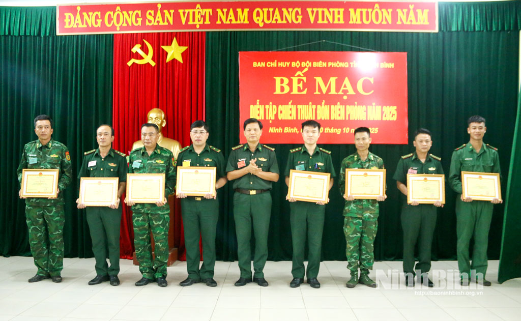 Nhân dịp này, Ban Chỉ huy Bộ đội Biên phòng tỉnh đã trao tặng Giấy khen cho 1 tập thể, 7 cá nhân có thành tích xuất sắc trong tham gia diễn tập chiến thuật cấp đồn biên phòng năm 2025.