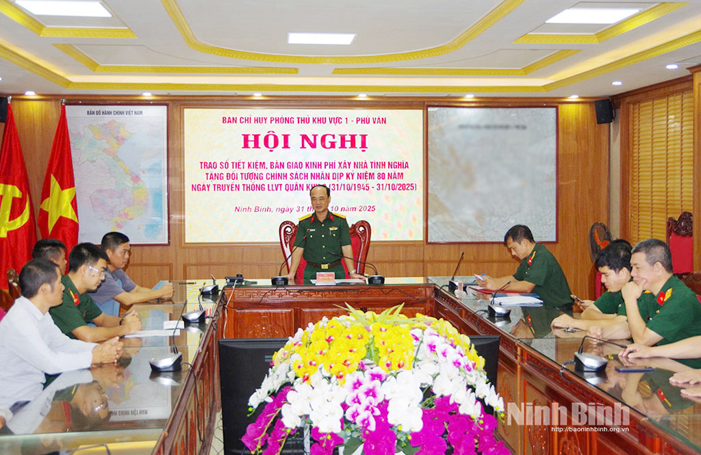 Thiết thực kỷ niệm 80 năm Ngày truyền thống lực lượng vũ trang Quân khu 3 (31/10/1945-31/10/2025), thừa ủy quyền của Bộ trưởng Bộ Quốc phòng và Bộ Tư lệnh Quân khu 3, ngày 31/10, Ban Chỉ huy Phòng thủ khu vực (PTKV) 1 - Phù Vân tổ chức trao tặng sổ tiết kiệm và bàn giao kinh phí xây dựng “Nhà tình nghĩa” cho các đối tượng chính sách có hoàn cảnh khó khăn trên địa bàn.