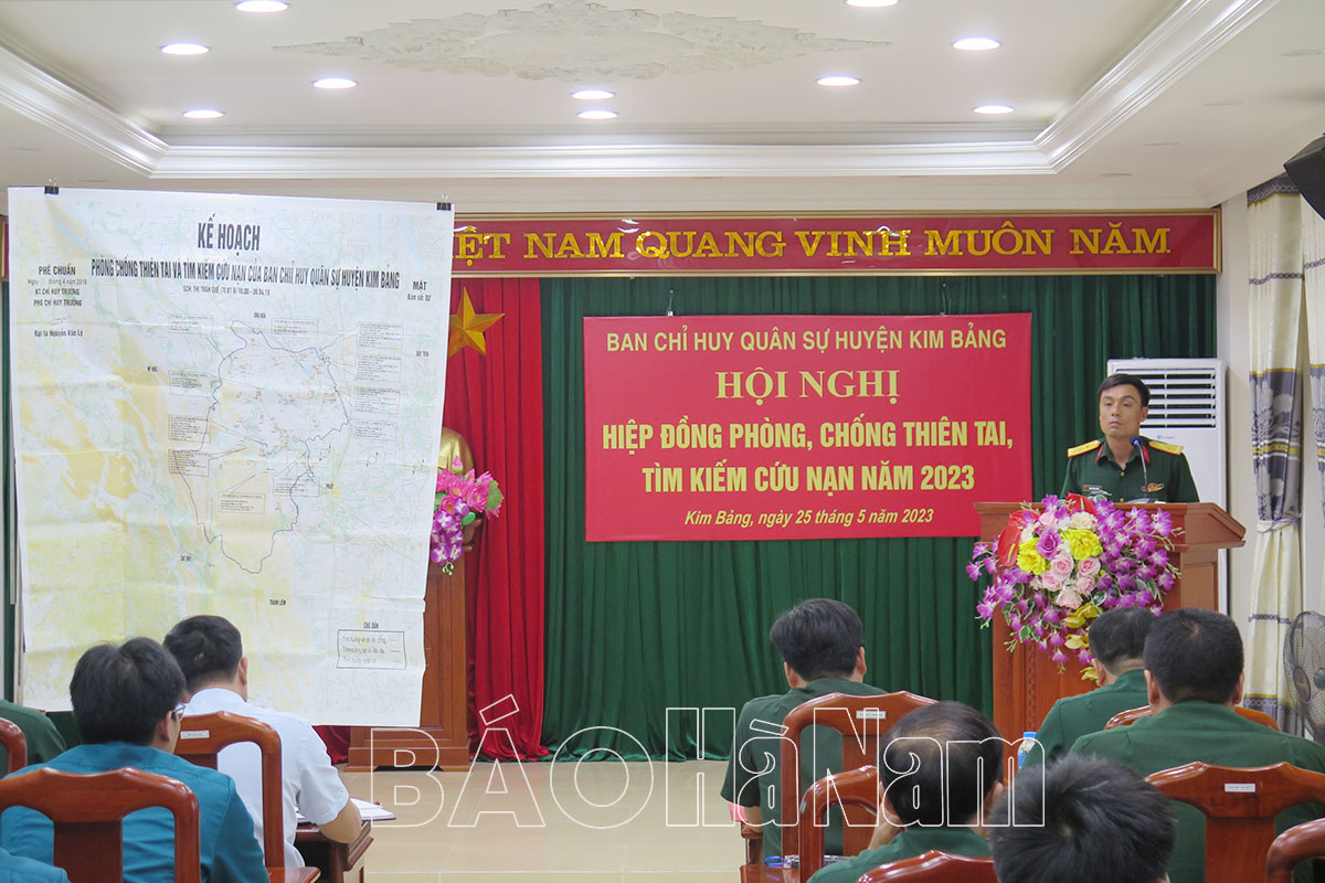 Bước vào mùa mưa bão năm nay, để chủ động ứng phó trước các tình huống thiên tai có thể xảy ra, Ban CHQS huyện Kim Bảng vừa tổ chức hiệp đồng với các cơ quan, đơn vị, làm tốt công tác chuẩn bị, sẵn sàng cho công tác phòng chống thiên tai – tìm kiếm cứu nạn (PCTT-TKCN).