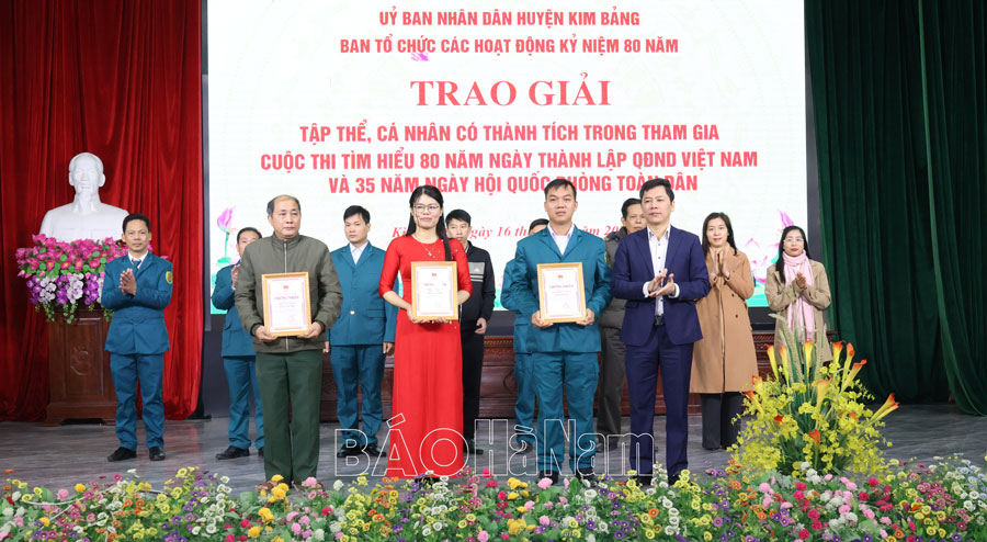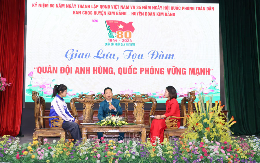 Nhân kỷ niệm 80 năm Ngày thành lập Quân đội nhân dân Việt Nam (22/12/1944 – 22/12/2024) và 35 năm Ngày hội Quốc phòng toàn dân (22/12/1989-22/12/2024), sáng 16/12, Ban CHQS huyện Kim Bảng phối hợp với Ban Thường vụ Huyện đoàn tổ chức chương trình giao lưu tọa đàm “Quân đội anh hùng, Quốc phòng vững mạnh”. Tham gia giao lưu có đông đảo cán bộ, đảng viên, cựu chiến binh, chiến sĩ lực lượng vũ trang (LLVT), đoàn viên, hội viên, thanh niên, học sinh một số trường học...