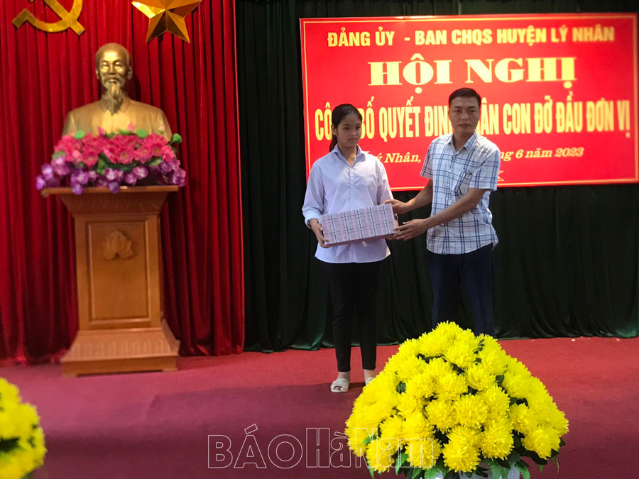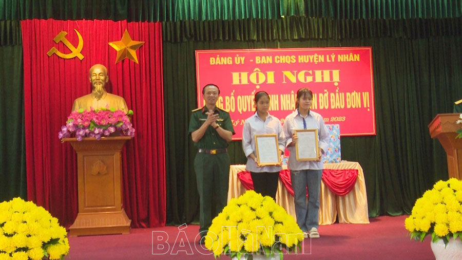 Theo các quyết định, Ban CHQS huyện Lý Nhân nhận đỡ đầu 2 cháu học sinh có hoàn cảnh đặc biệt khó khăn, đó là: cháu Phạm Thị Kiều Trinh, học sinh lớp 8A, Trường THCS xã Đức Lý; có hộ khẩu thường trú tại thôn Nội Kiếu, xã Đức Lý, huyện Lý Nhân; cháu Đoàn Thị Kiều My, học sinh lớp 11C, Trường THPT Nam Cao, có hộ khẩu thường trú tại thôn Nha Tiến, xã Nhân Bình, huyện Lý Nhân.