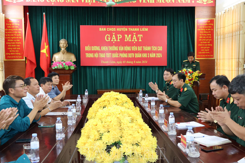 Tại buổi gặp mặt, đồng chí Chỉ huy trưởng Ban CHQS huyện Thanh Liêm đã tặng giấy khen, biểu dương những chiến sĩ dân quân đã nỗ lực cố gắng khắc phục khó khăn, hoàn thành tốt nhiệm vụ và đạt thành tích xuất sắc trong Hội thao TDTT quốc phòng Quân khu 3. Đồng chí chỉ huy trưởng cũng đề nghị thời gian tới các cấp, ngành, địa phương, đơn vị tạo điều kiện thuận lợi cho cán bộ, chiến sĩ dân quân tiếp tục tham gia tốt hoạt động công tác quốc phòng, quân sự địa phương.