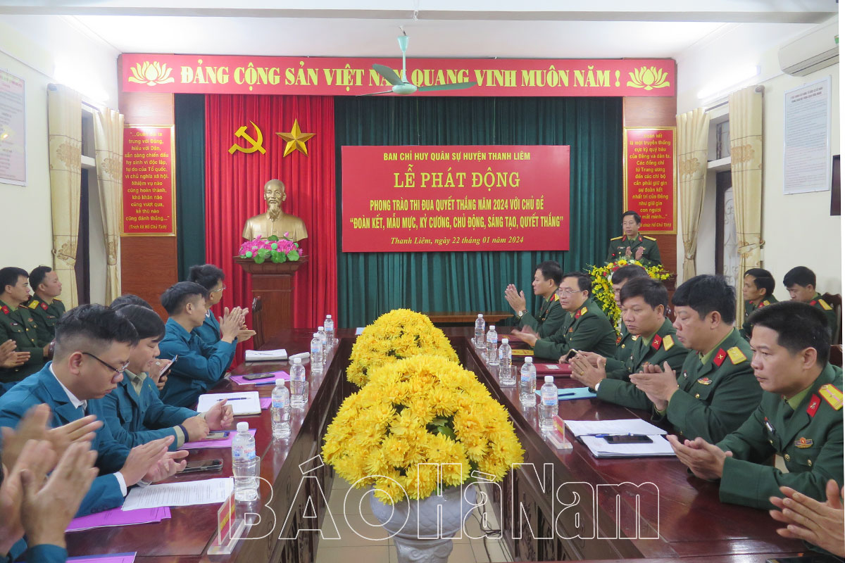 Sáng 22/1, Ban CHQS huyện Thanh Liêm tổ chức lễ phát động phong trào thi đua Quyết thắng (TĐQT) năm 2024 với chủ đề “Đoàn kết, mẫu mực, kỷ cương, chủ động, sáng tạo, quyết thắng”.