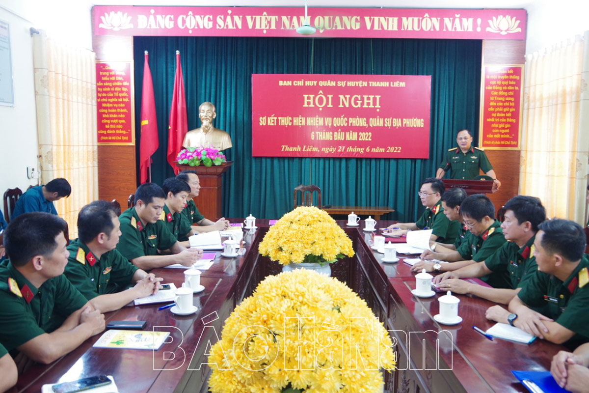 Để thực hiện thắng lợi nhiệm vụ QS, QPĐP năm 2022, Ban CHQS huyện Thanh Liêm xác định nhiệm vụ 6 tháng cuối năm. Trong đó, tập trung chỉ đạo cán bộ, chiến sĩ LLVT huyện hoàn thành tốt 10 nhiệm vụ trọng tâm. Tiếp tục duy trì nghiêm chế độ trực sẵn sàng chiến đấu, phòng chống thiên tai-tìm kiếm cứu nạn, phòng chống cháy nổ, cháy rừng. Tăng cường phối hợp nắm tình hình địa bàn, tham mưu cho cấp ủy, chính quyền địa phương giải quyết có hiệu quả những vấn đề nảy sinh, giữ vững an ninh chính trị, trật tự an toàn xã hội.