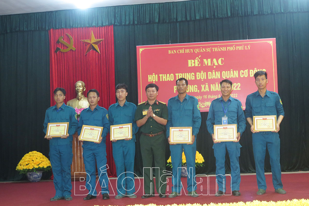 Kết thúc hội thao, Ban tổ chức đã trao giải nhất nhì, ba ở các nội dung cho các tập thể, cá nhân. Trong đó, đối với tập thể: giải nhất thuộc về Trung đội DQCĐ phường Thanh Châu; giải nhì Trung đội DQCĐ xã Phù Vân; giải ba: Trung đội DQCĐ xã Liêm Chung. Đối với cá nhân, Ban tổ chức trao giải nhất, nhì, ba cho các đồng chí trung đội trưởng, tiểu đội trưởng, toàn năng cá nhân nam, nữ 3 môn quân sự phối hợp.