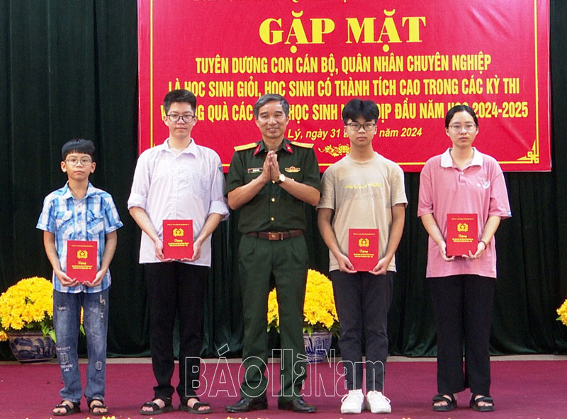 Nhân dịp này, Ban CHQS thành phố Phủ Lý đã tổ chức gặp mặt, tuyên dương, tặng quà 62 cháu học sinh là con cán bộ, quân nhân chuyên nghiệp và con nuôi đơn vị đạt thành tích cao trong học tập năm học 2023-20024.