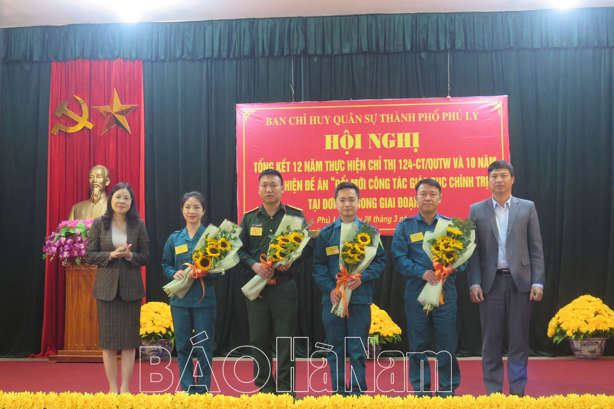 Ban CHQS thành phố Phủ Lý vừa tổ chức tổng kết 12 năm thực hiện Chỉ thị số 124-CT/QUTW ngày 31/3/2011 của Thường vụ Quân uỷ Trung ương về tăng cường lãnh đạo, chỉ đạo công tác giáo dục chính trị tại đơn vị trong giai đoạn mới và 10 năm thực hiện Đề án “Đổi mới công tác giáo dục chính trị tại đơn vị trong giai đoạn mới”.