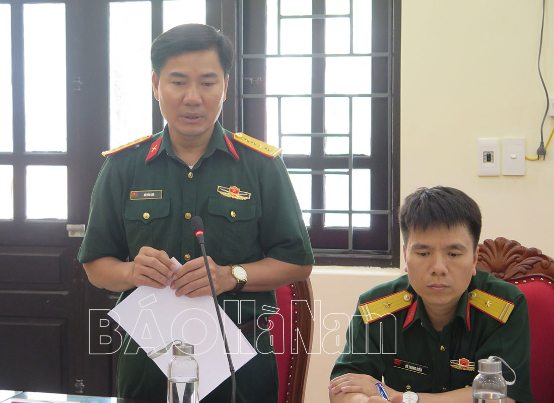 Đại biểu Phòng Chính trị Bộ CHQS tỉnh phát biểu tại hội nghị.