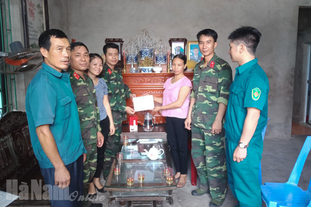 Nhân dịp này, Ban CHQS và Hội Phụ nữ thị xã Duy Tiên đã thăm hỏi, tặng 10 suất quà động viên gia đình chính sách, thân nhân các quân nhân tại ngũ, người neo đơn có hoàn cảnh khó khăn trên địa bàn với tổng trị giá 3.500.000 đồng.
