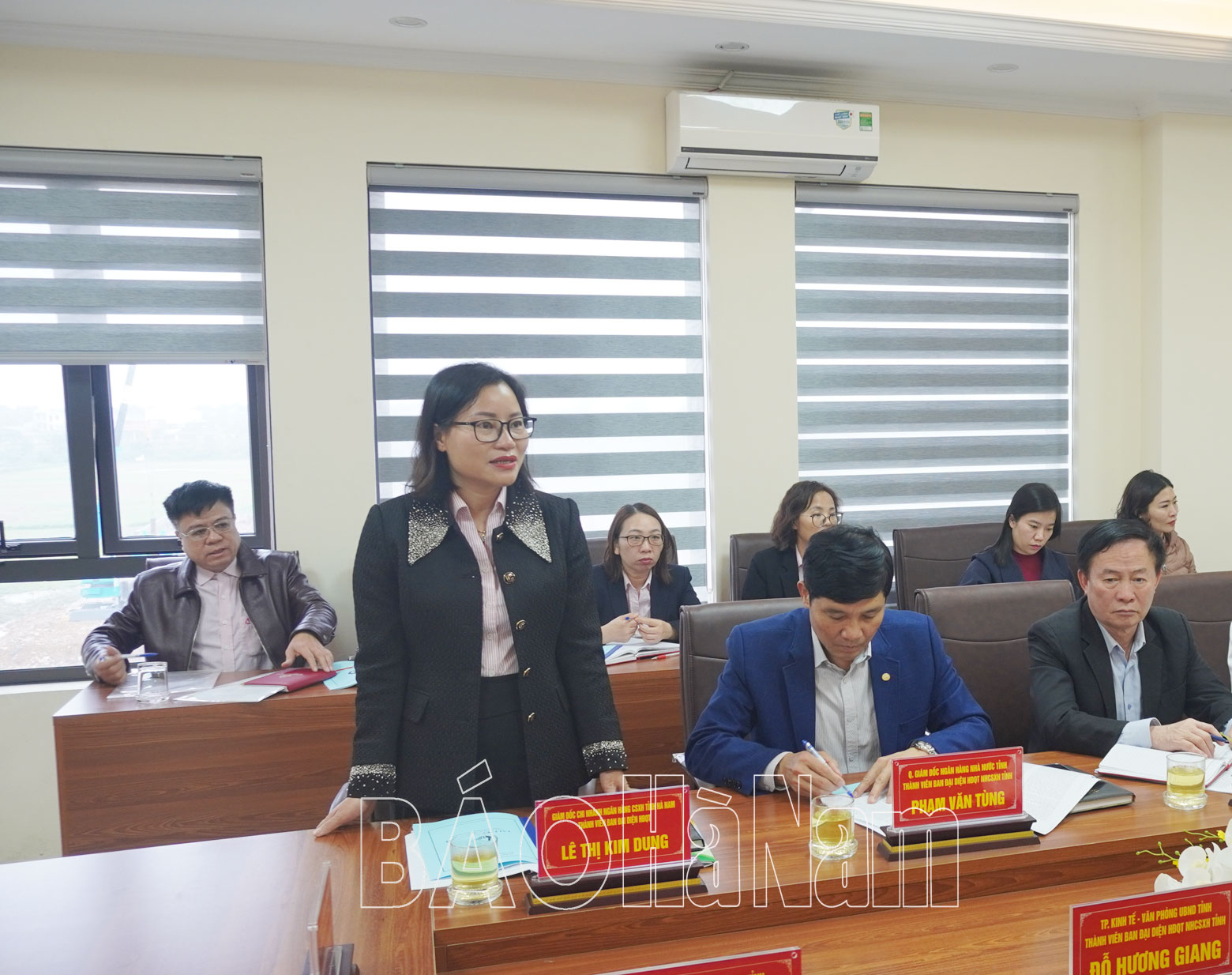 Lãnh đạo NHCSXH tỉnh Hà Nam phát biểu tại hội nghị.