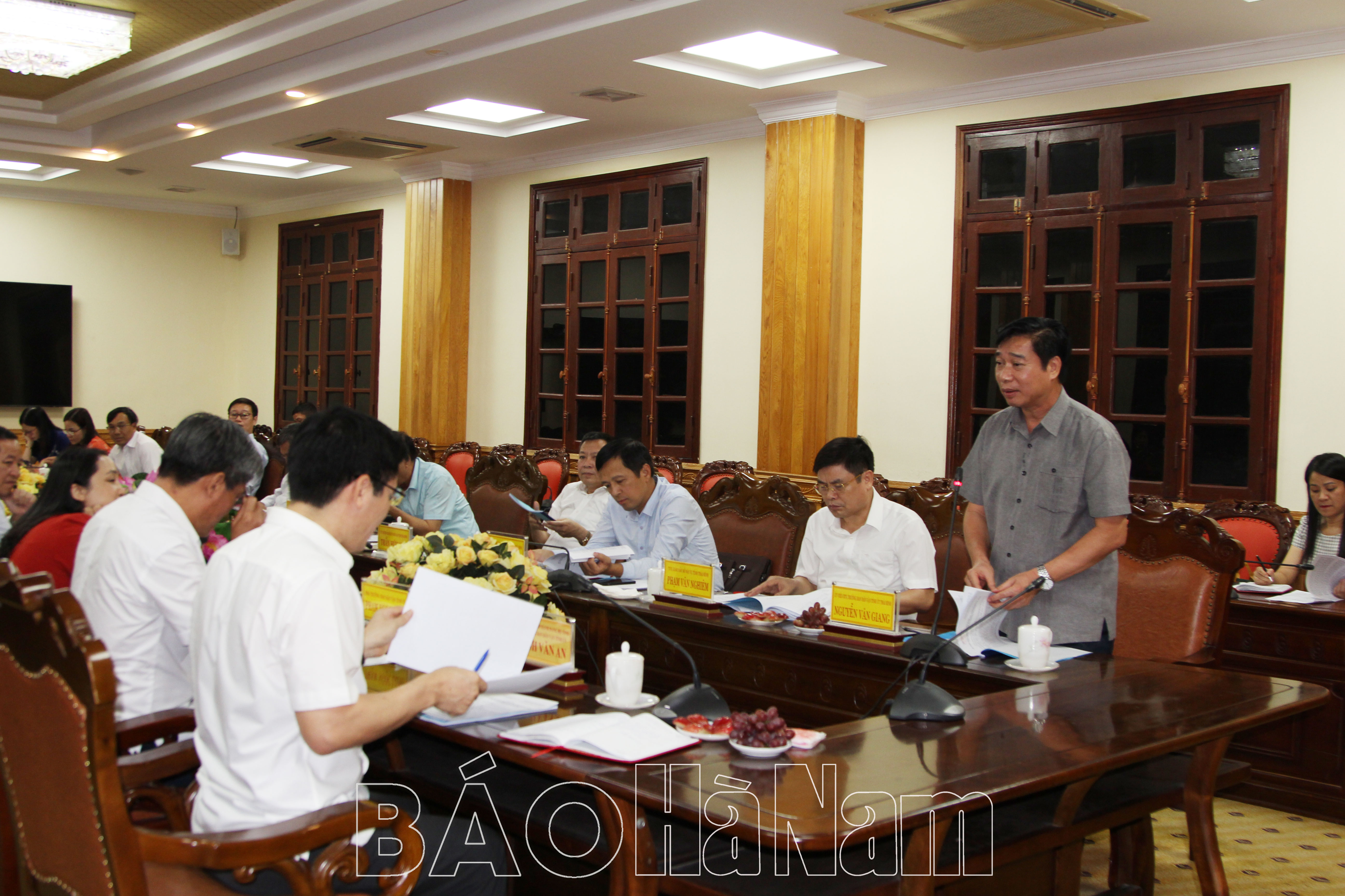 Đồng chí Đinh Văn An, Tỉnh ủy viên, Phó Trưởng Ban Thường trực Ban Dân vận Tỉnh ủy Hà Nam trao đổi kết quả, kinh nghiệm thực hiện mô hình “Chính quyền thân thiện vì Nhân dân phục vụ” trên địa bàn tỉnh Hà Nam.