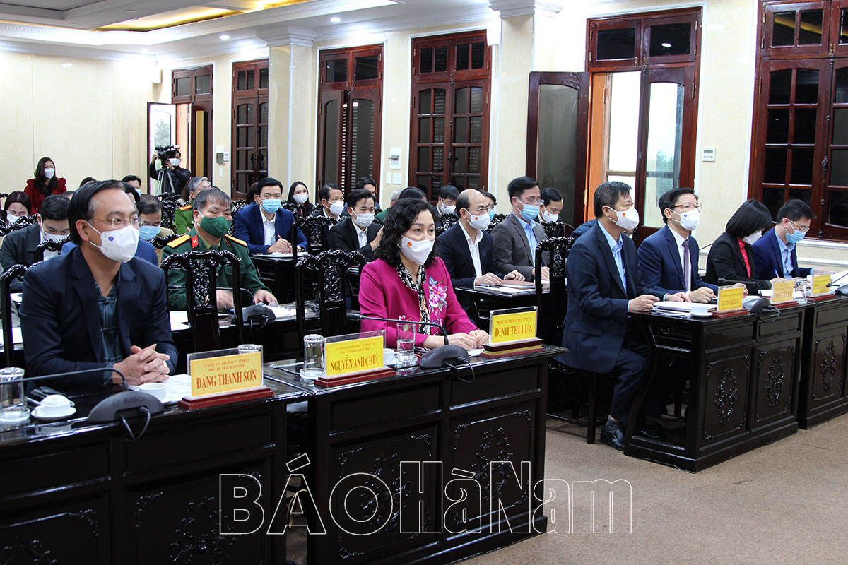 Biểu dương, ghi nhận những kết quả đạt được trong CTDV của tỉnh Hà Nam năm 2021, đồng chí Bùi Tuấn Quang, Phó trưởng ban Ban Dân vận Trung ương đề nghị: Năm 2022, Ban Dân vận Tỉnh ủy Hà Nam và hệ thống dân vận các cấp trong tỉnh cần tiếp tục tham mưu, phối hợp đẩy mạnh công tác tuyên truyền nâng cao nhận thức, trách nhiệm cho CBĐV, CCVC và các tầng lớp nhân dân về vị trí, vai trò CTDV của Đảng trong tình hình mới; cụ thể hóa nhiệm vụ CTDV được xác định trong Đại hội XIII của Đảng phù hợp với nhiệm vụ cụ thể địa phương; phối hợp nắm tình hình, tâm tư nguyện vọng các tầng lớp nhân dân tham mưu, giải quyết kịp thời các vấn đề phát sinh; tuyên truyền, vận động nhân dân thực hiện tốt chủ trương, chính sách pháp luật của Đảng, Nhà nước, nghị quyết đại hội đảng các cấp. Tham mưu xây dựng, nhân rộng mô hình "Dân vận khéo"; phát huy tốt vai trò của MTTQ, các đoàn thể chính trị- xã hội trong giám sát, phản biện xã hội, góp ý xây dựng Đảng, chính quyền …tăng cường vai trò nêu gương của người đứng đầu trong thực hiện Nghị quyết Trung ương 4 (khóa XIII) về xây dựng chỉnh đốn Đảng, xây dựng hệ thống chính trị gắn với thực hiện Chỉ thị 05 của Bộ Chính trị.