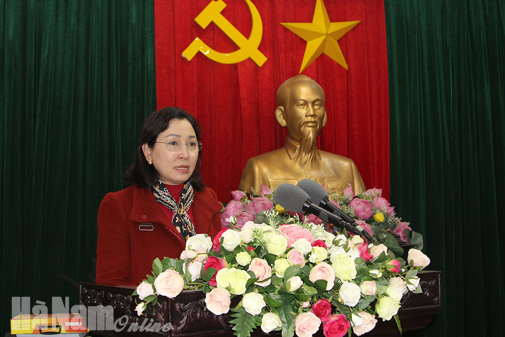 Đồng chí Đinh Thị Lụa, Phó Bí thư Thường trực Tỉnh ủy phát biểu chỉ đạo hội nghị.