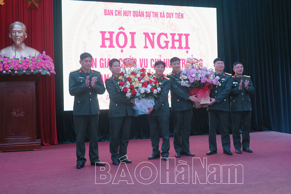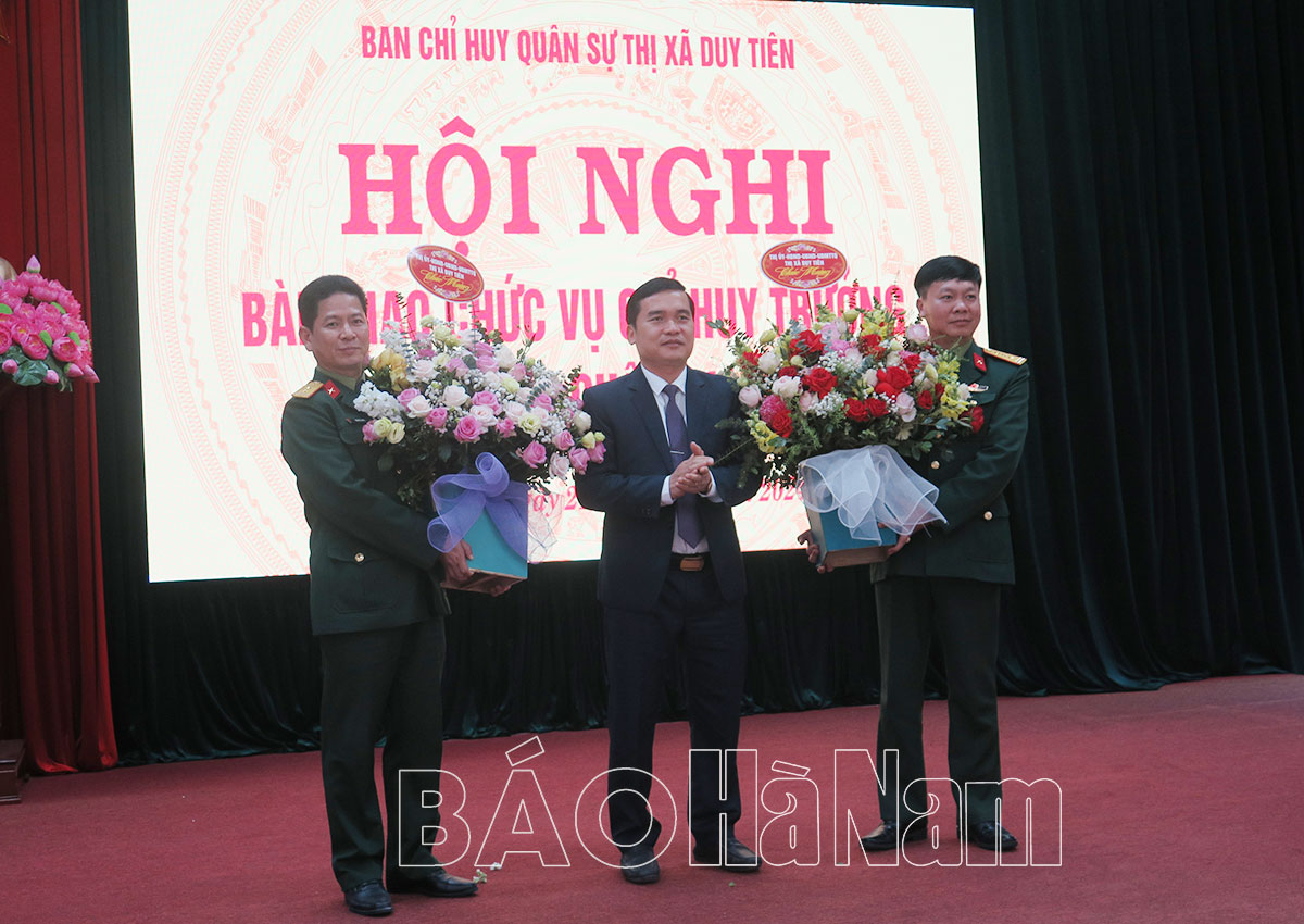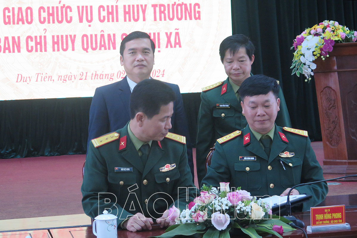 Chiều ngày 21/2, Ban CHQS thị xã Duy Tiên tổ chức hội nghị bàn giao chức vụ Chỉ huy trưởng Ban CHQS thị xã. Đại tá Trịnh Hồng Phong, Phó Bí thư Đảng uỷ Quân sự tỉnh, Chỉ huy trưởng Bộ CHQS tỉnh dự, chủ trì hội nghị.